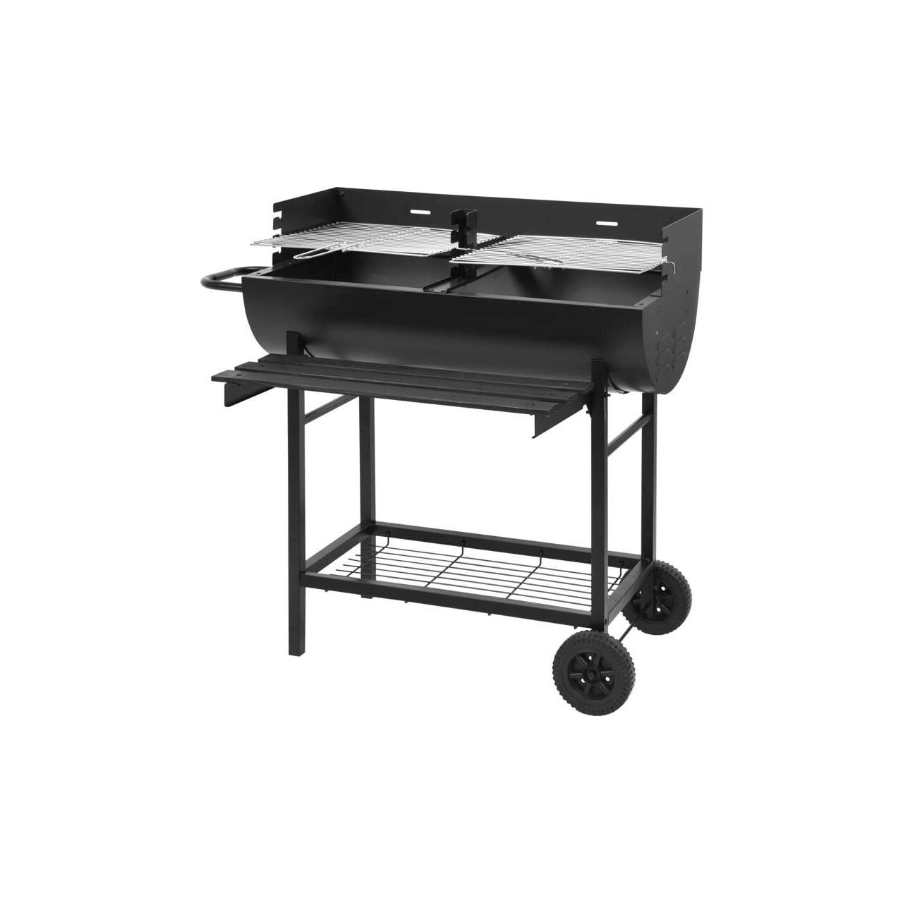 Gratar de gradina conceput pentru a pregati feluri de mancare in aer liber. Are un grătar reglabil, cromat, un mâner confortabil și rafturi pentru accesorii