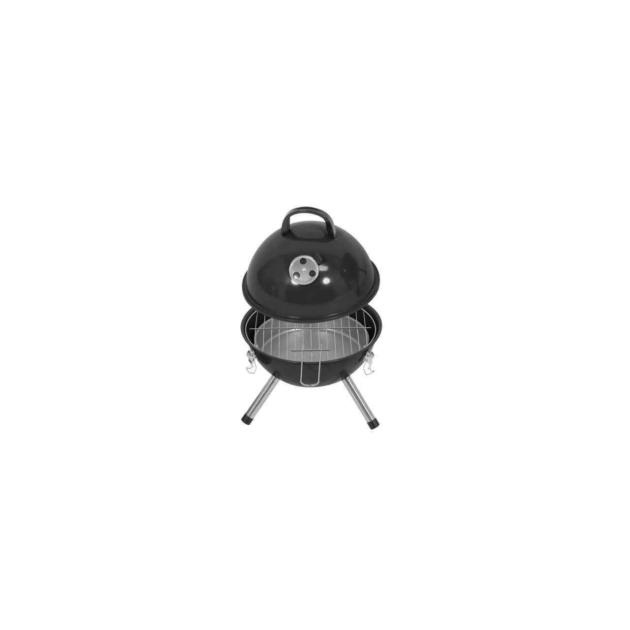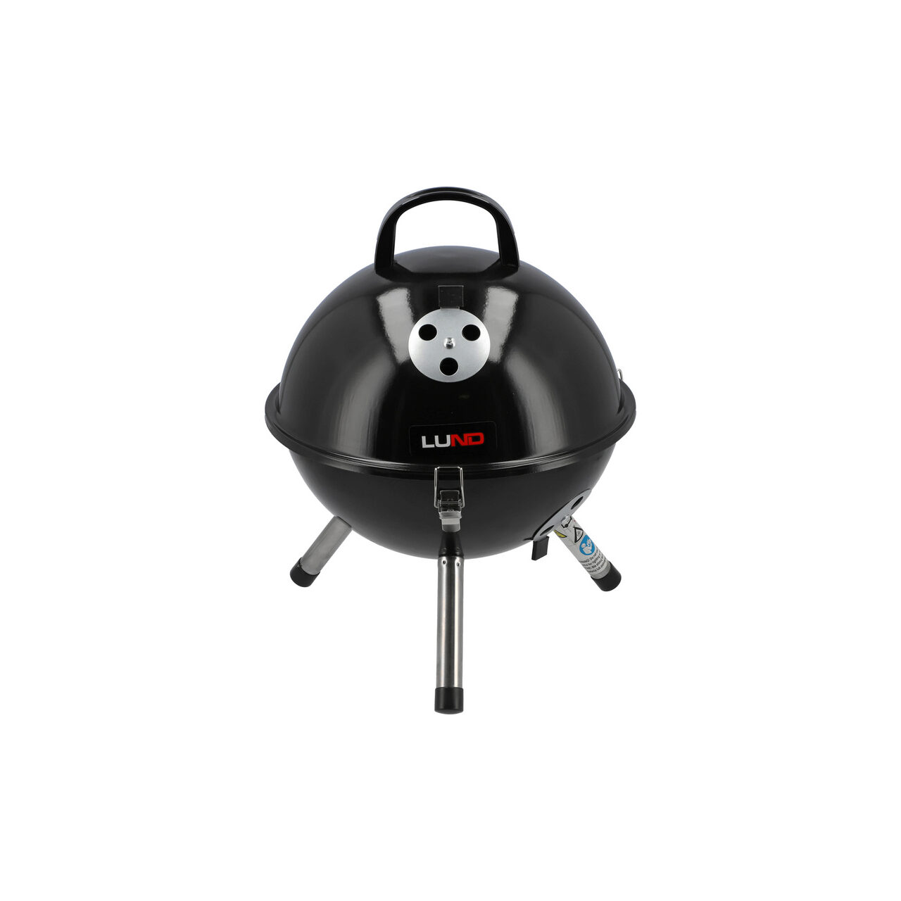 Grătar de camping clasic, rotund, LUND 99922, cu cărbune, cu grătar cromat și capac care reține căldura. Este echipat cu numeroase facilități – o cutie de foc galvanizată, ecrane pentru reglarea circulației aerului și cleme pentru închiderea ermetică a capacului. Grătarul îndeplinește și respectă standardele de siguranță.