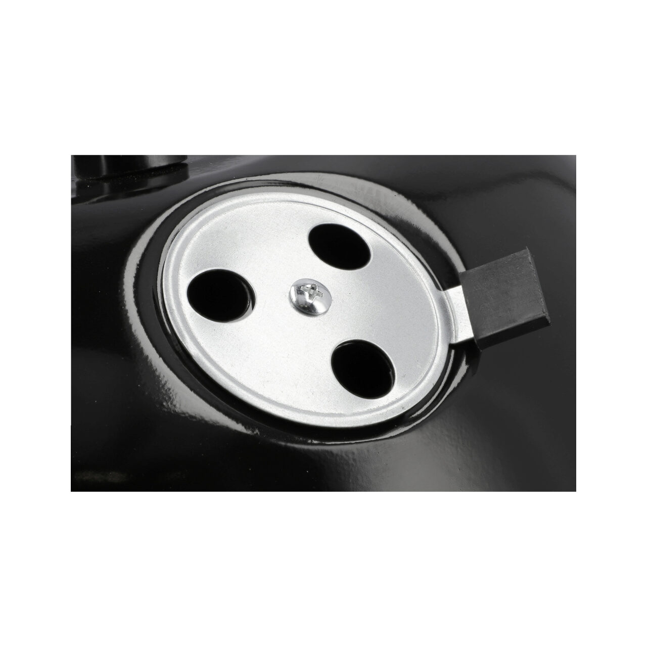 Grătar clasic de camping pe cărbune, rotund, cu grătar cromat și capac care reține căldura. Este echipat cu numeroase facilități – o cutie de foc emailată, un obturator pentru reglarea circulației aerului și cleme pentru închiderea ermetică a capacului. Capacul emailat cu mâner vă permite să mențineți și să controlați temperatura, păstrând aroma fumului. Grătarul îndeplinește și respectă standardele de siguranță.