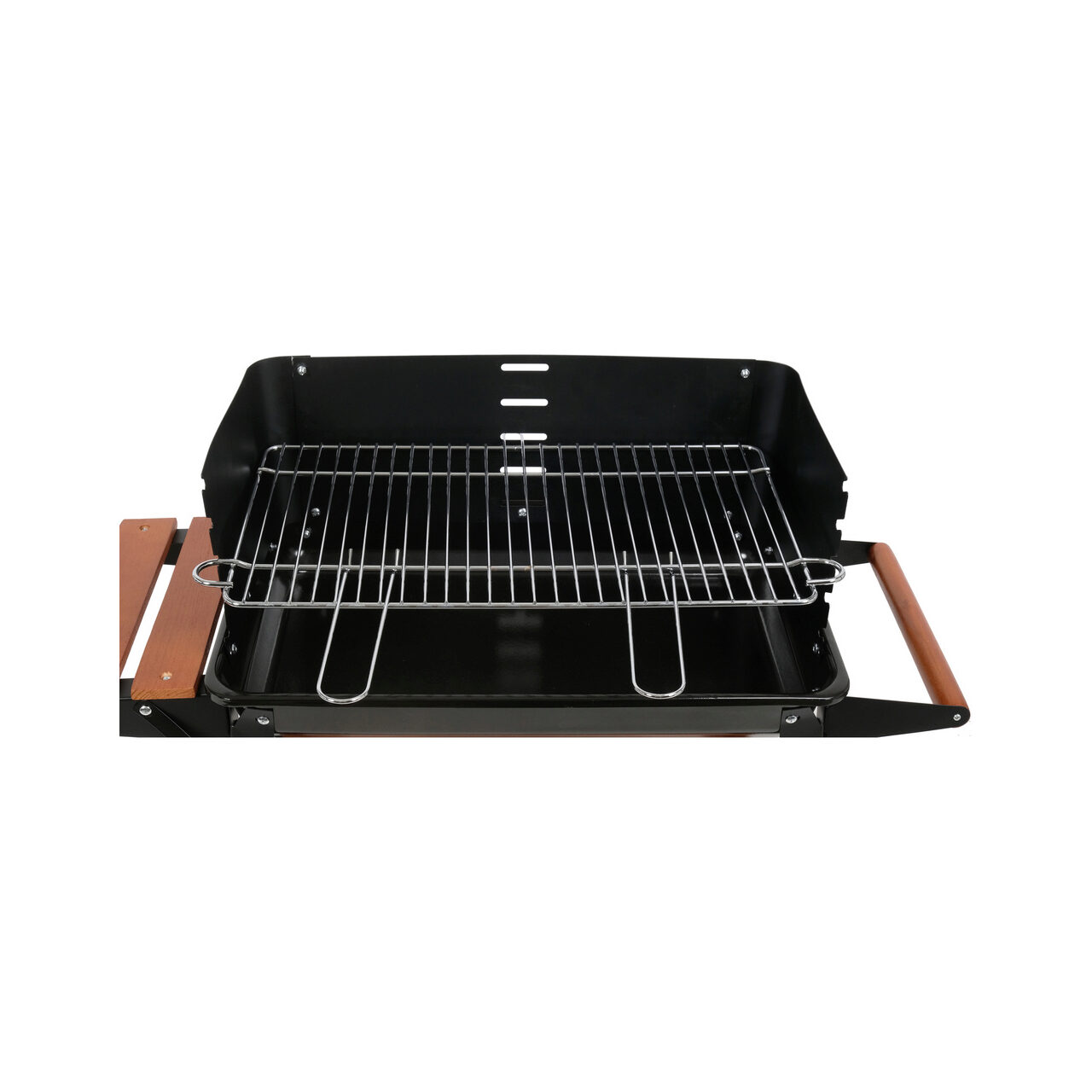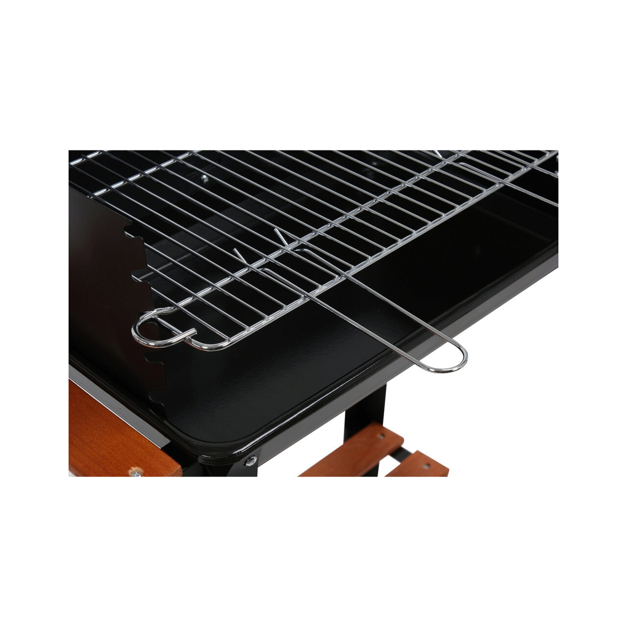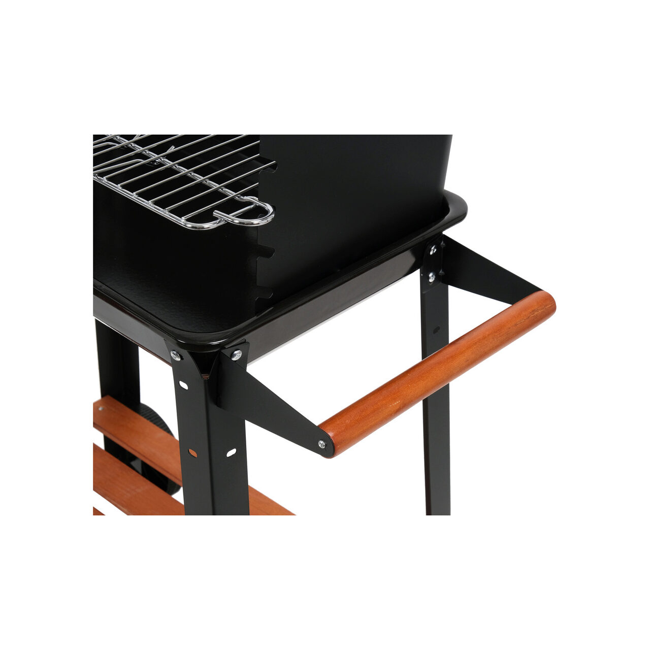 - raftul inferior din lemn facilitează depozitarea accesoriilor și a cărbunelui