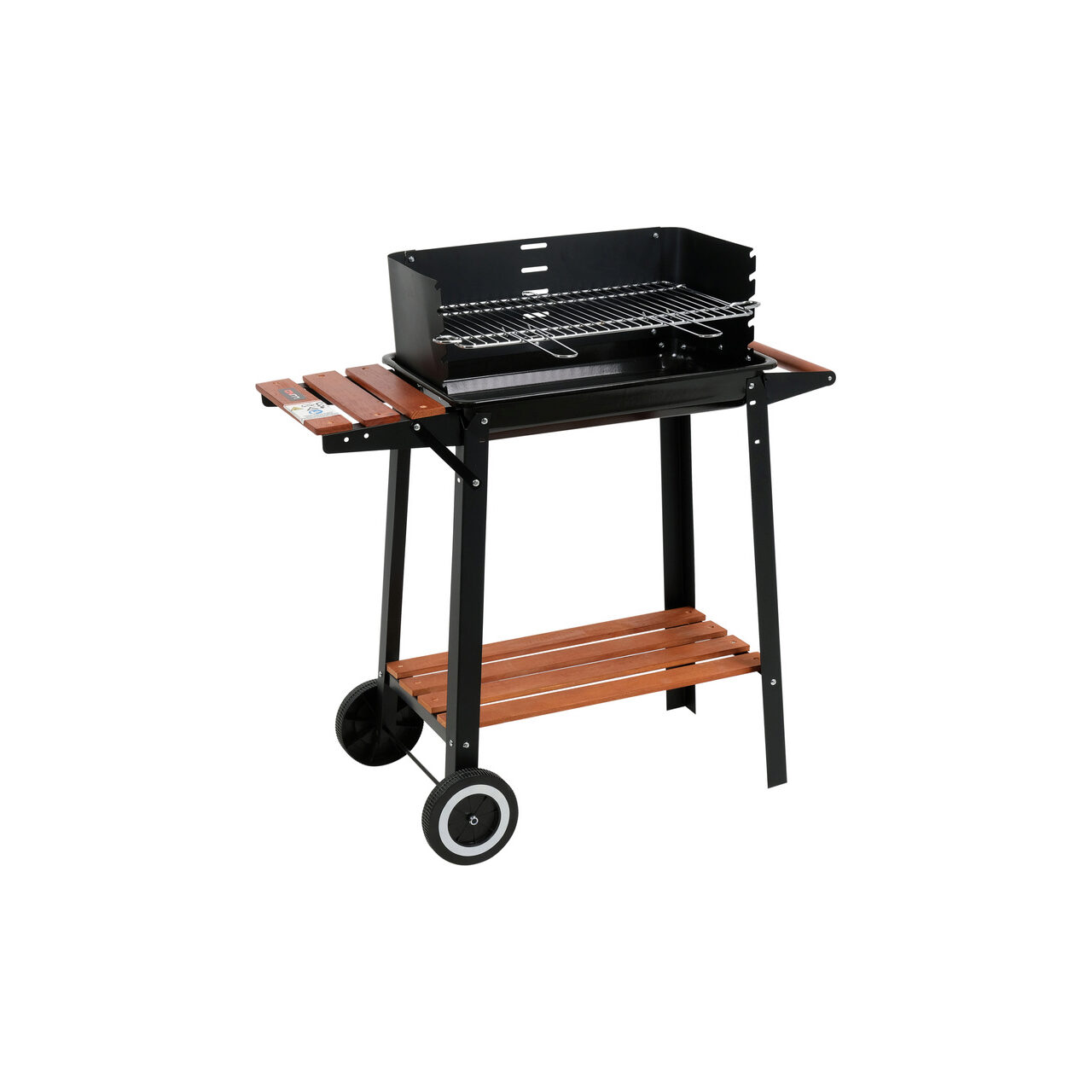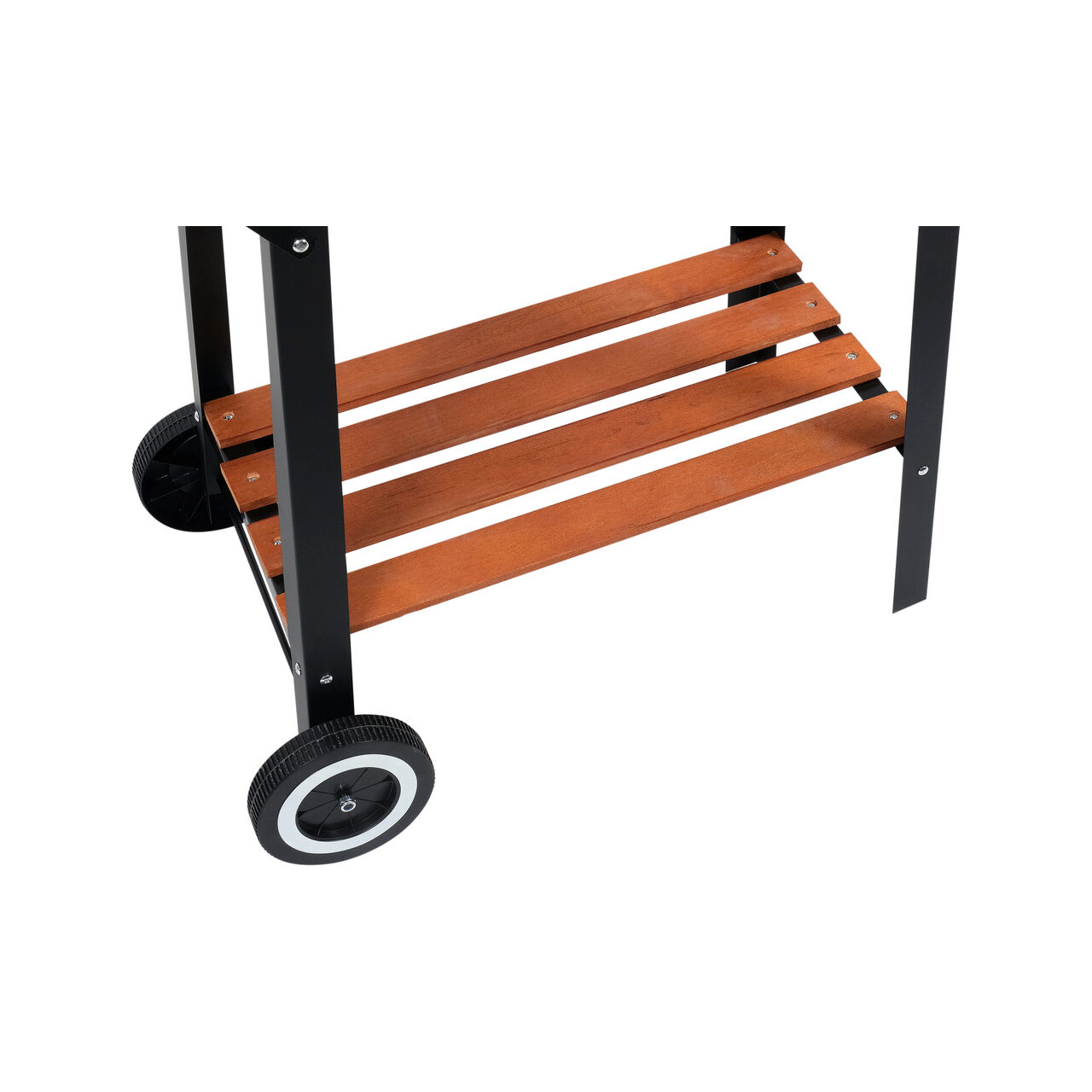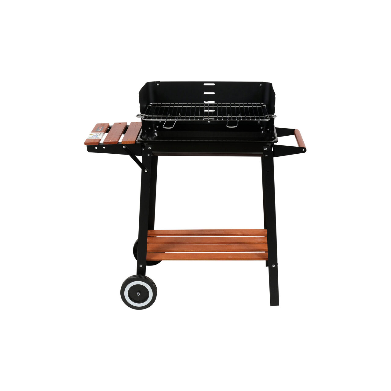 - raftul inferior din lemn facilitează depozitarea accesoriilor și a cărbunelui