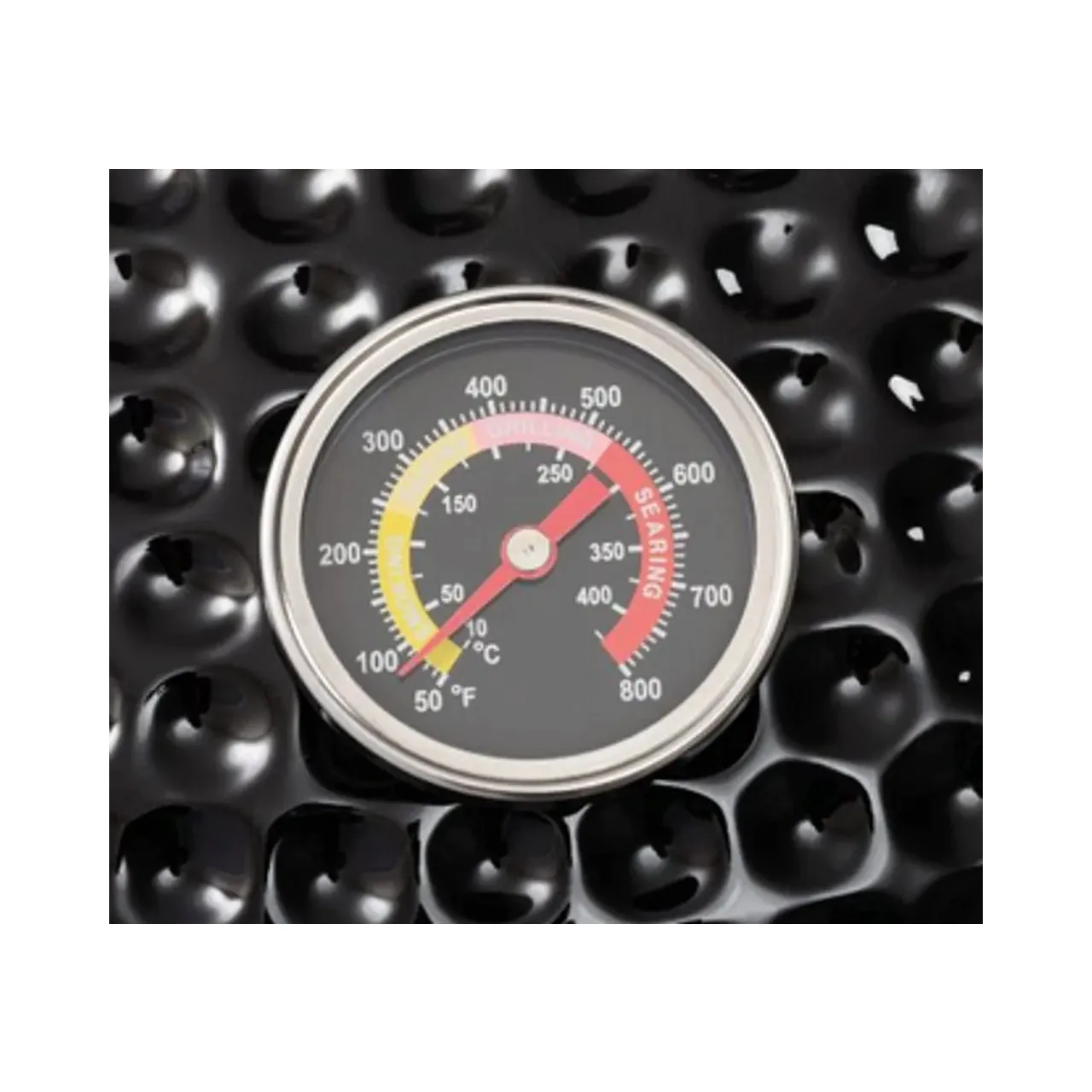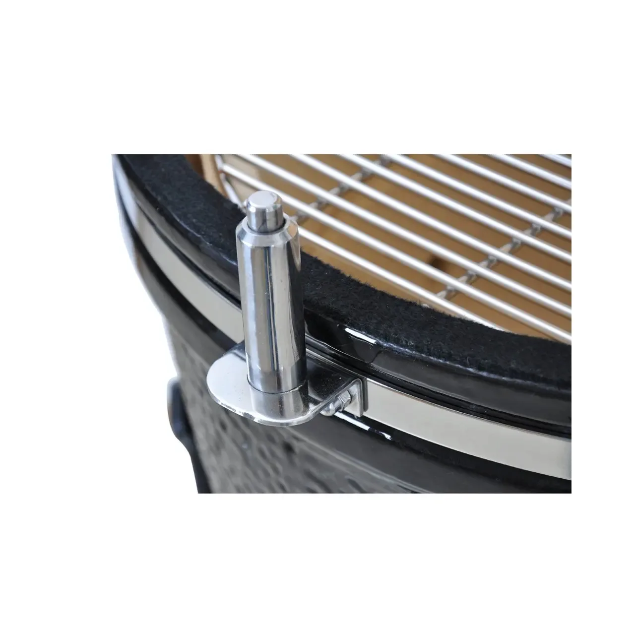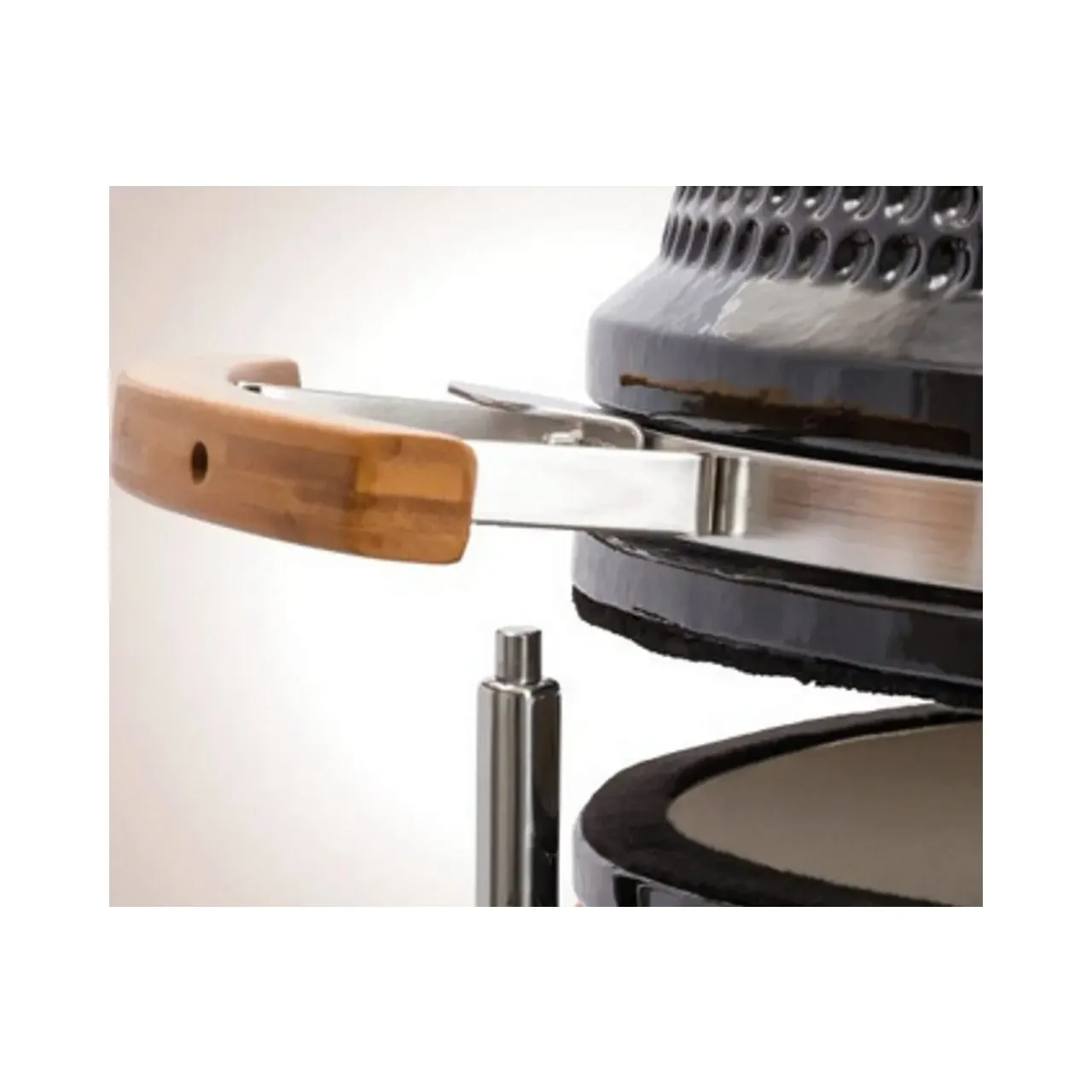 Ceramica smălțuită neagră combinată cu oțel inoxidabil și rafturi pliante din lemn de bambus durabil conferă grătarului un aspect exclusivist.