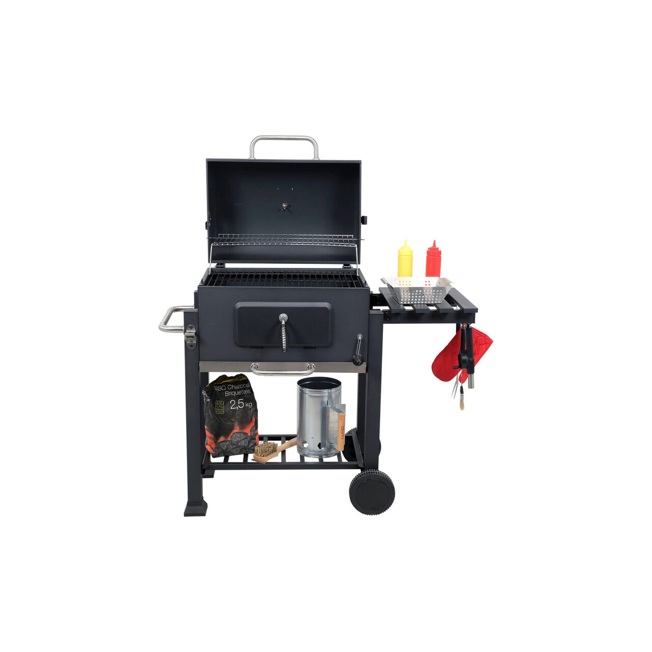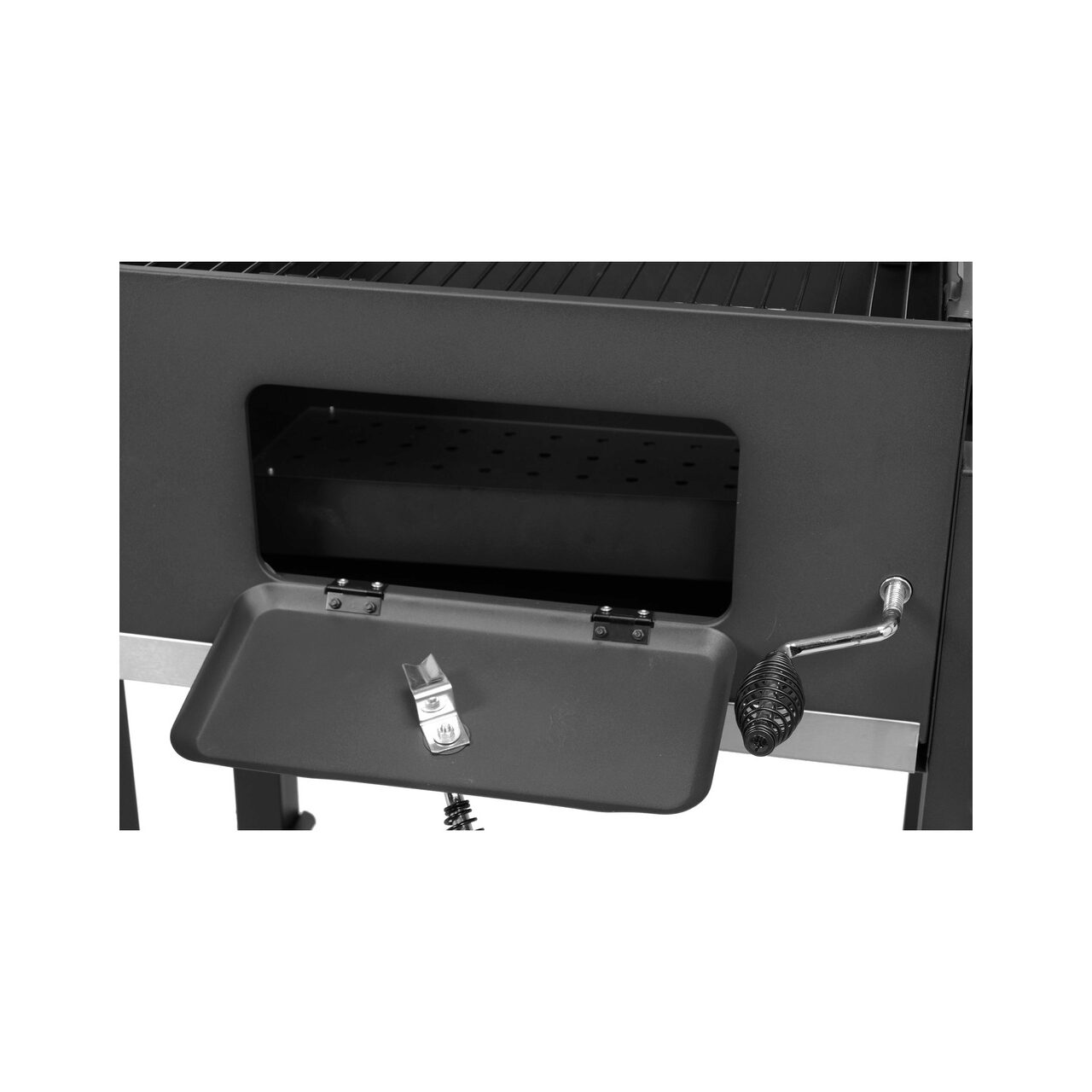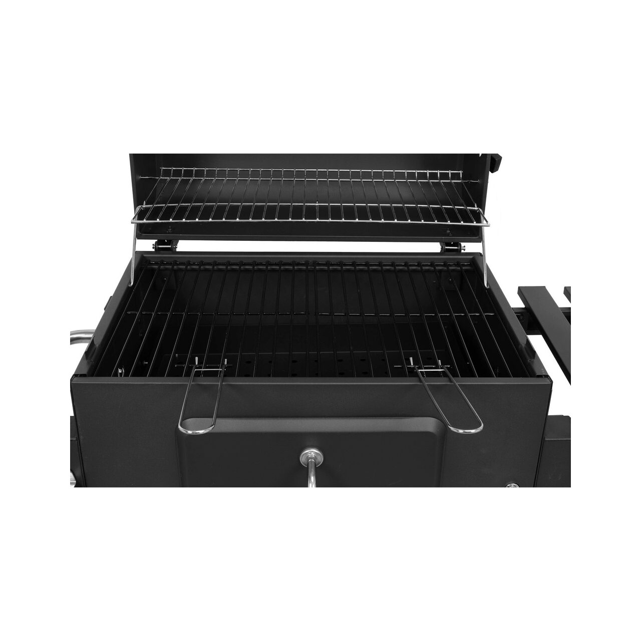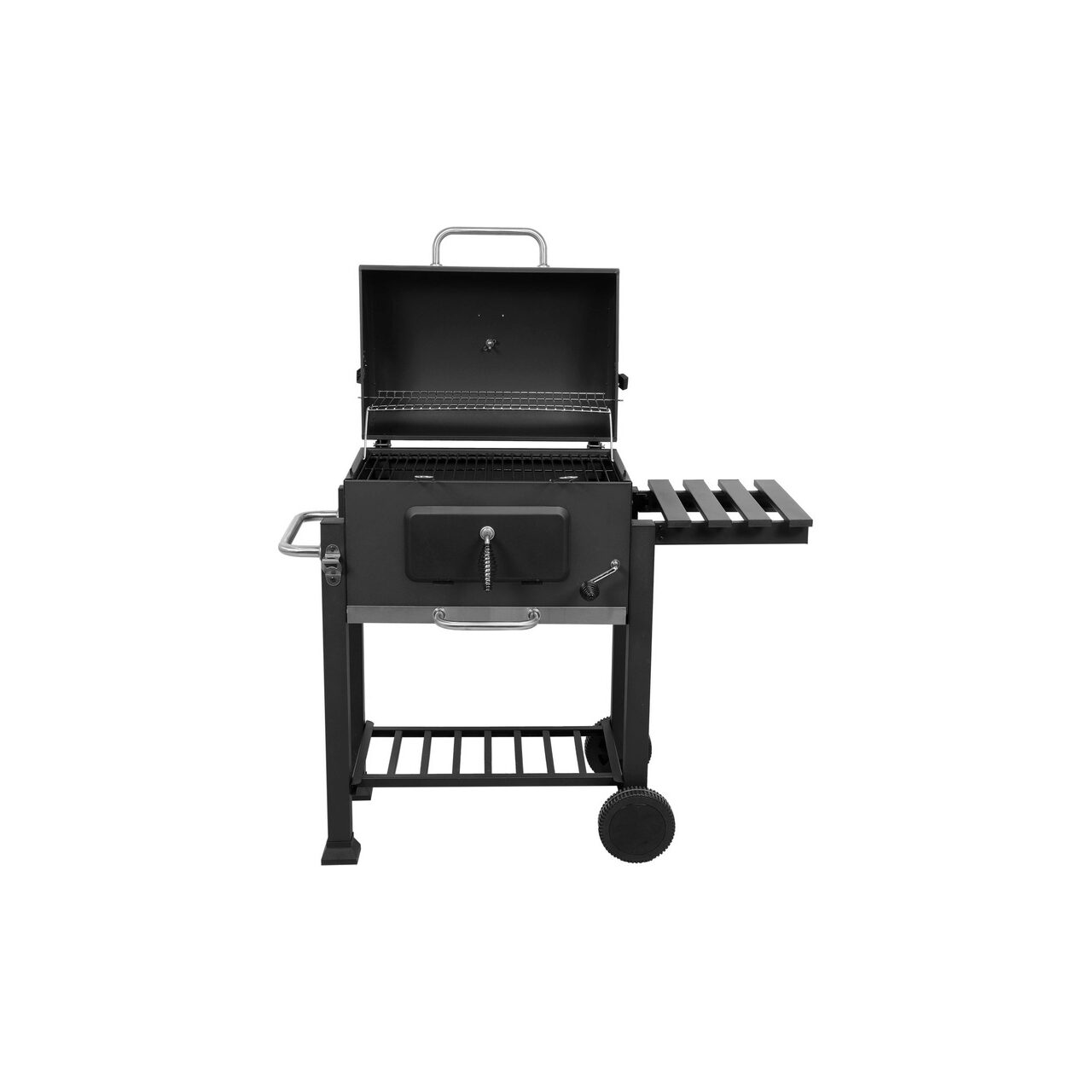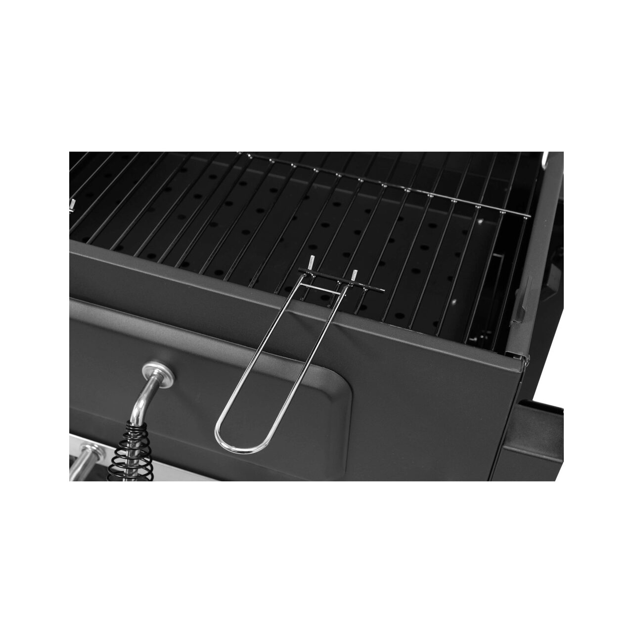 Grătar de cărbune mare și stabil, cu un grătar emailat fiabil și o grilă de încălzire cromată. Datorită reglării line a înălțimii plăcii, utilizatorul poate adapta temperatura jarului la mâncarea preparată. Caracteristicile suplimentare includ un desfăcător de sticle încorporat, un raft lateral pliabil și o scrumieră extensibilă . Grătarul îndeplinește și respectă standardele de siguranță.