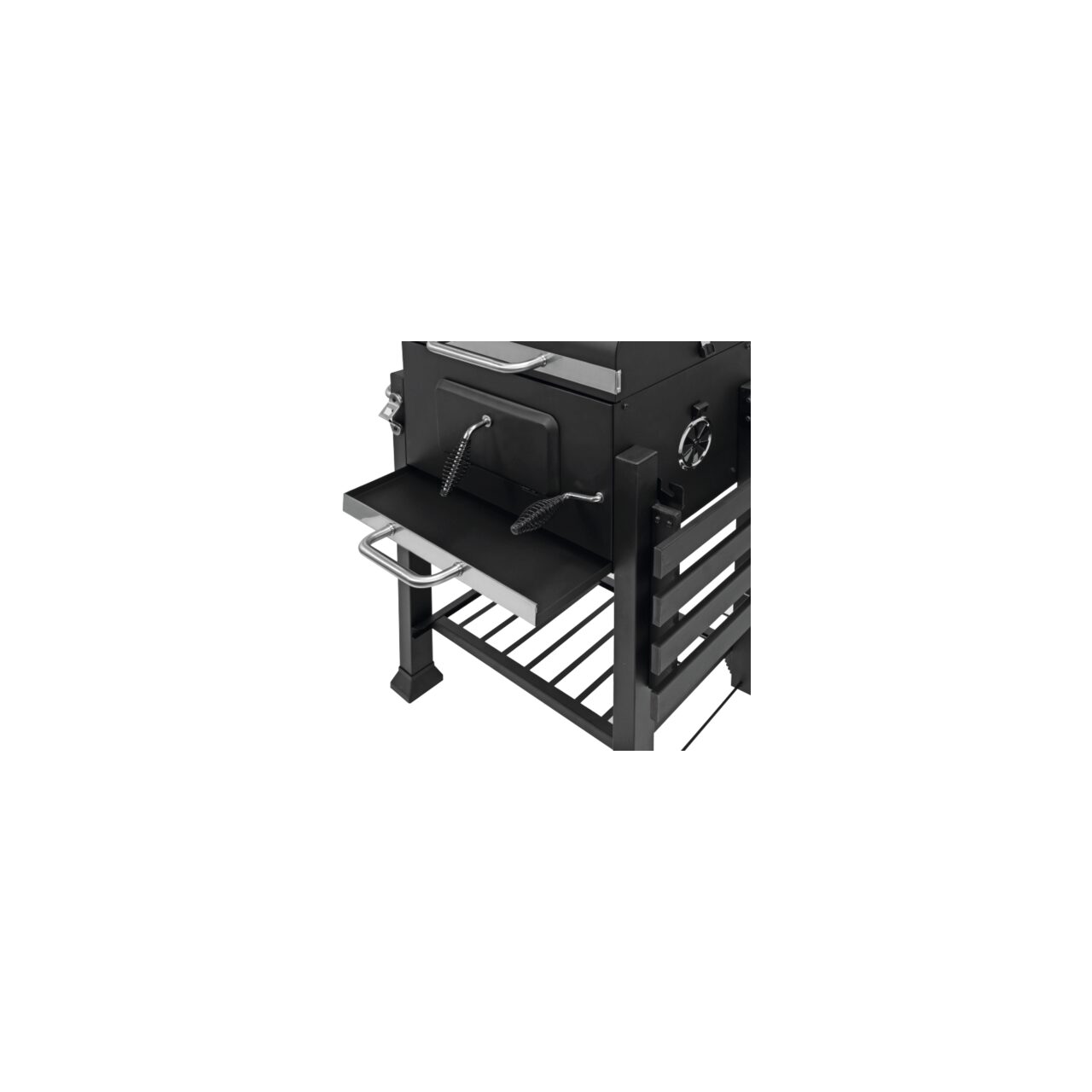 - Raftul lateral metalic pliabil facilitează pregătirea și depozitarea alimentelor - după plierea raftului lateral, grătarul ocupă mai puțin spațiu și este mai ușor de depozitat
