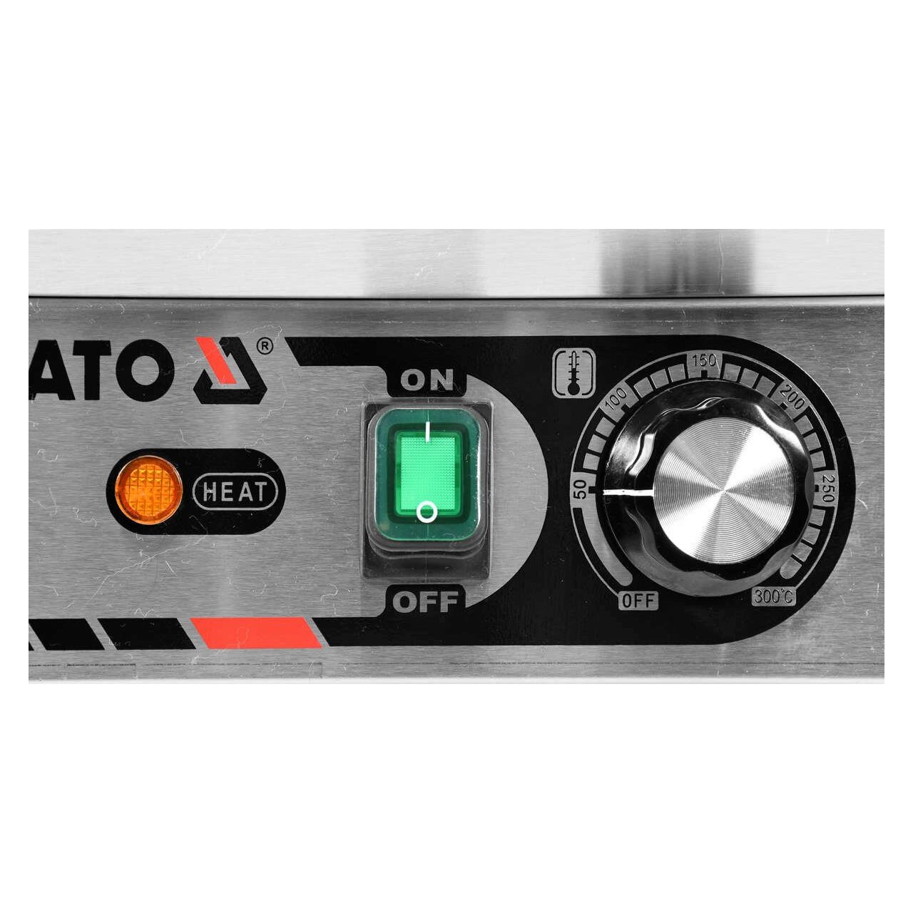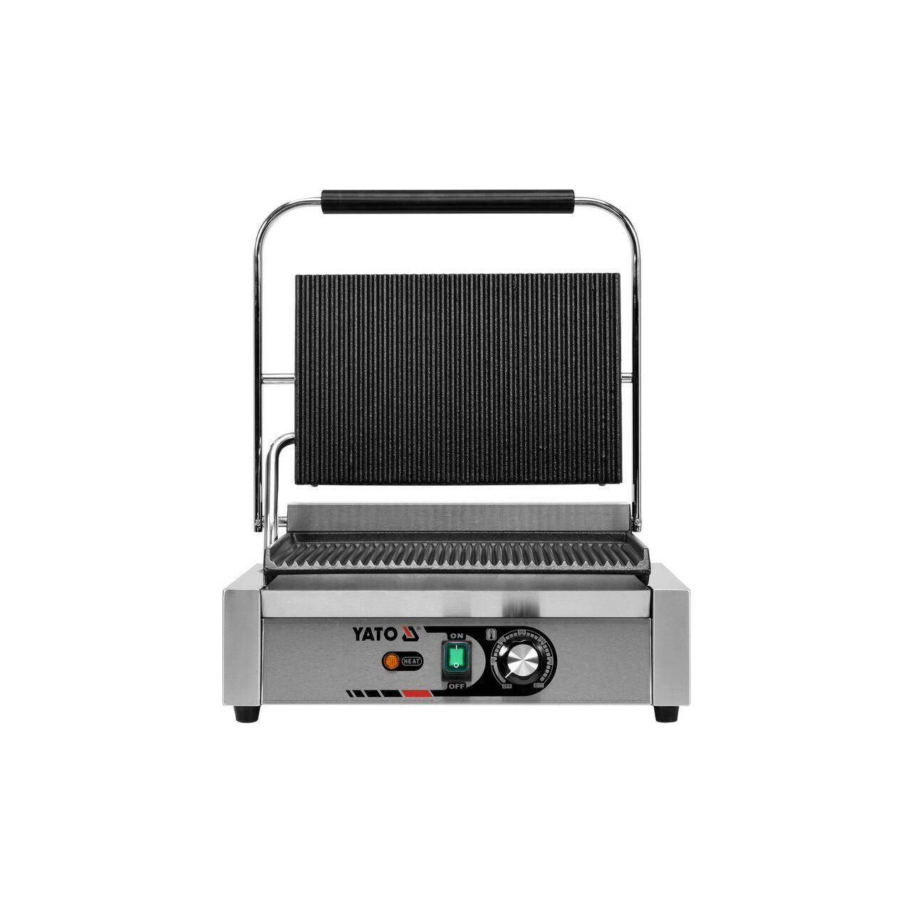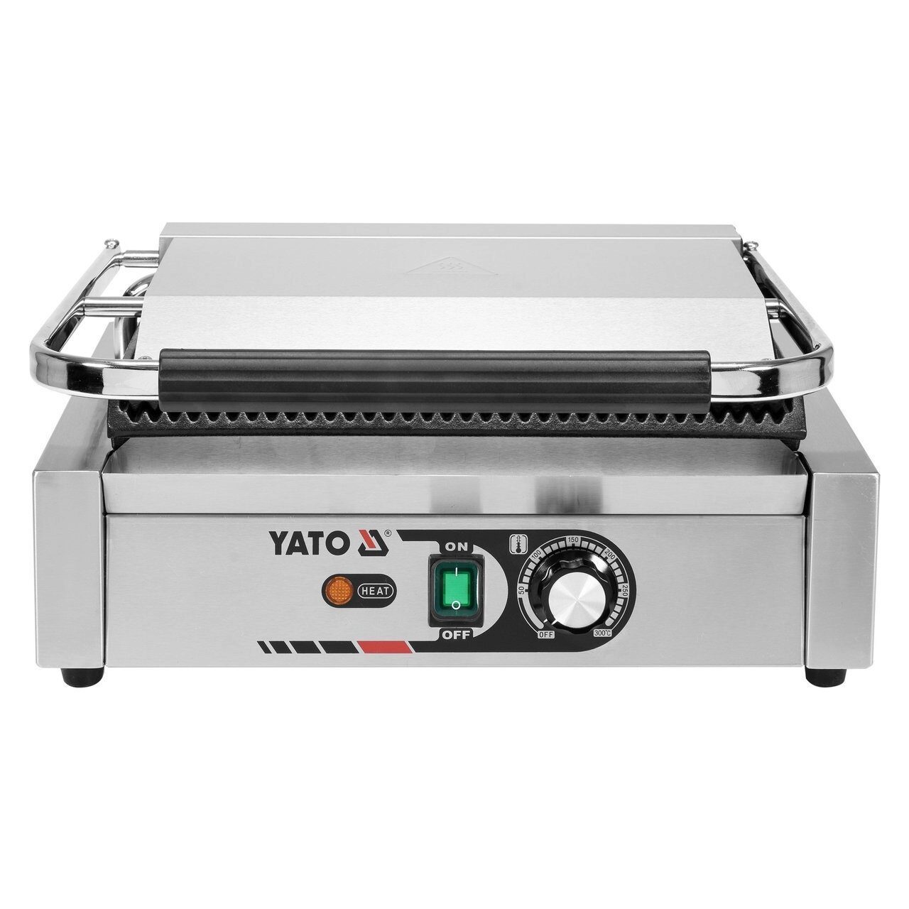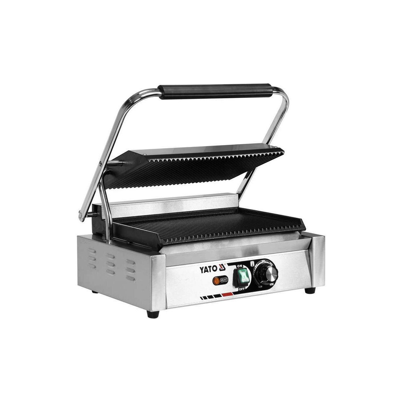 Grătarul YATO este un dispozitiv indispensabil în fiecare bucătărie. Este destinat preparării rapide a hamburgerilor, a cărnii, a peștelui, a tortilelor, a toastelor, a panini și a legumelor.