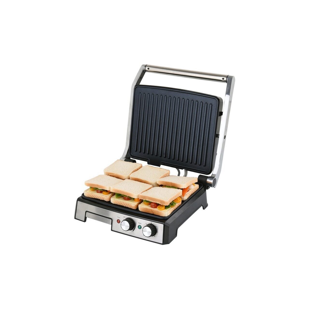 Conceput pentru prepararea rapida a carnii, pestelui, legumelor si painei prajite. Funcția de reglare a plăcilor de încălzire vă permite să le reglați la înălțimea produselor de prăjit. Datorită cronometrului încorporat, poți fi sigur că nu vei arde vasul.
