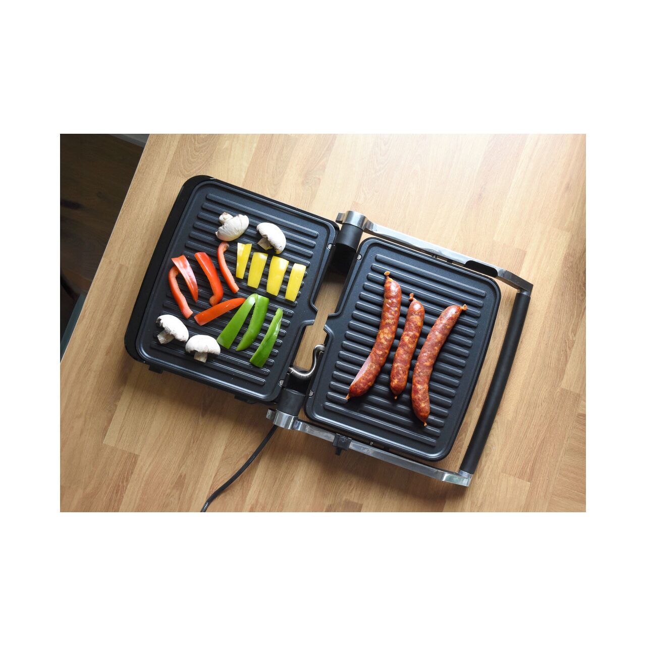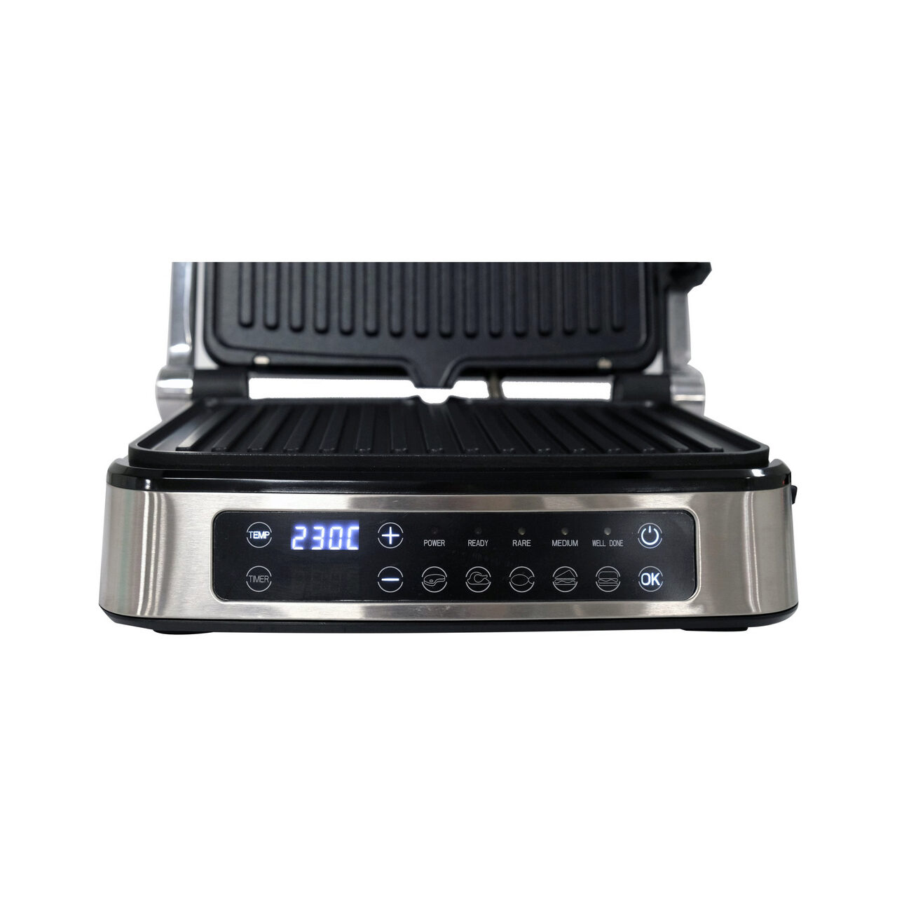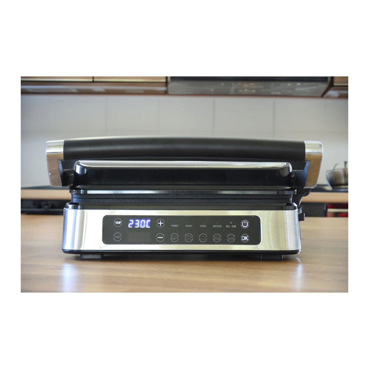 Grătar electric de contact cu putere de 2000W și panou de control digital. Grătarul are tipuri de lucru predefinite: friptură, pui, pește, pâine prăjită, hamburger. În plus, poate indica și trei moduri de prăjire: rare, mediu, bine făcut sau poate seta manual temperatura sau timpul de funcționare. Grătarul electric are plăci mari care pot fi scoase și spălate în mașina de spălat vase.