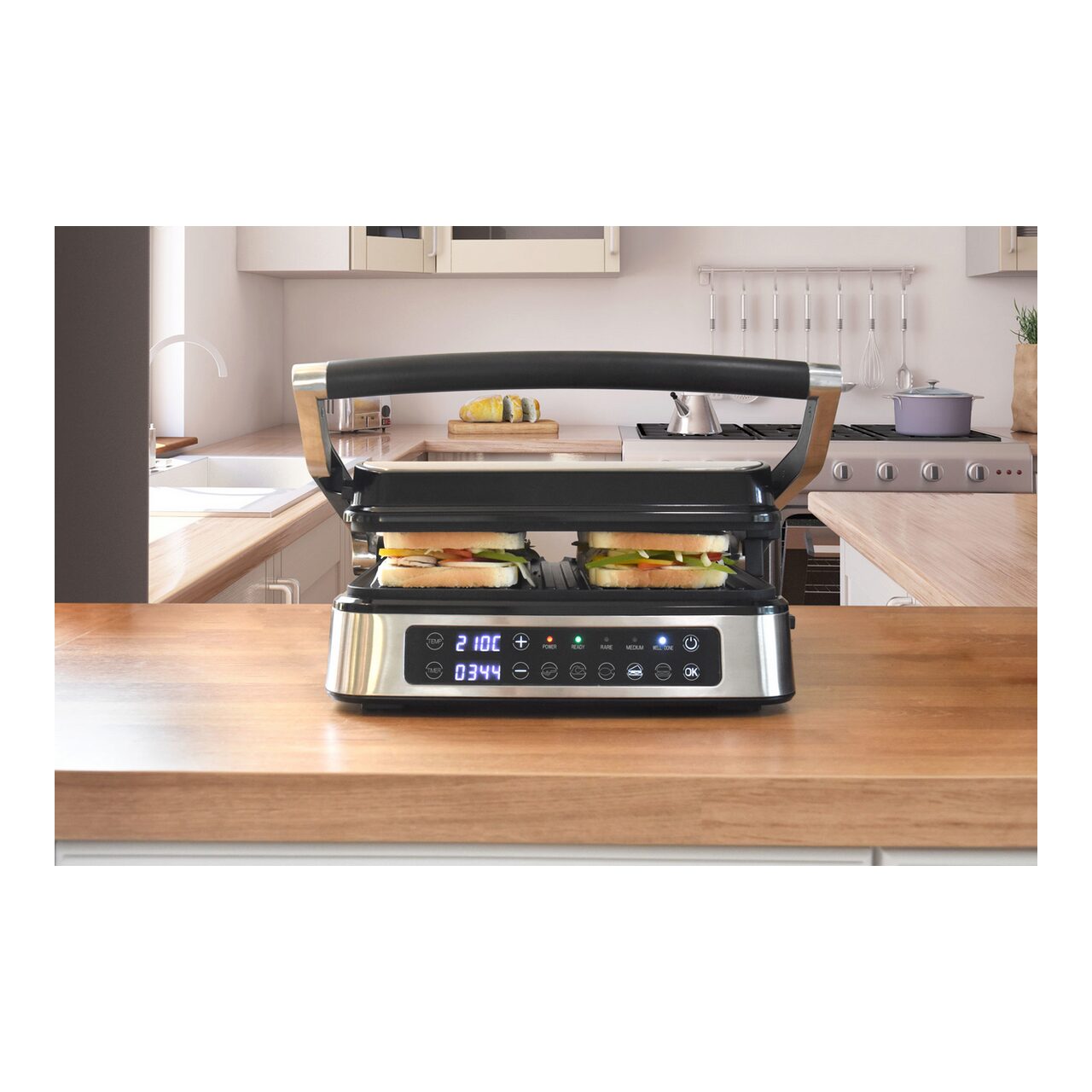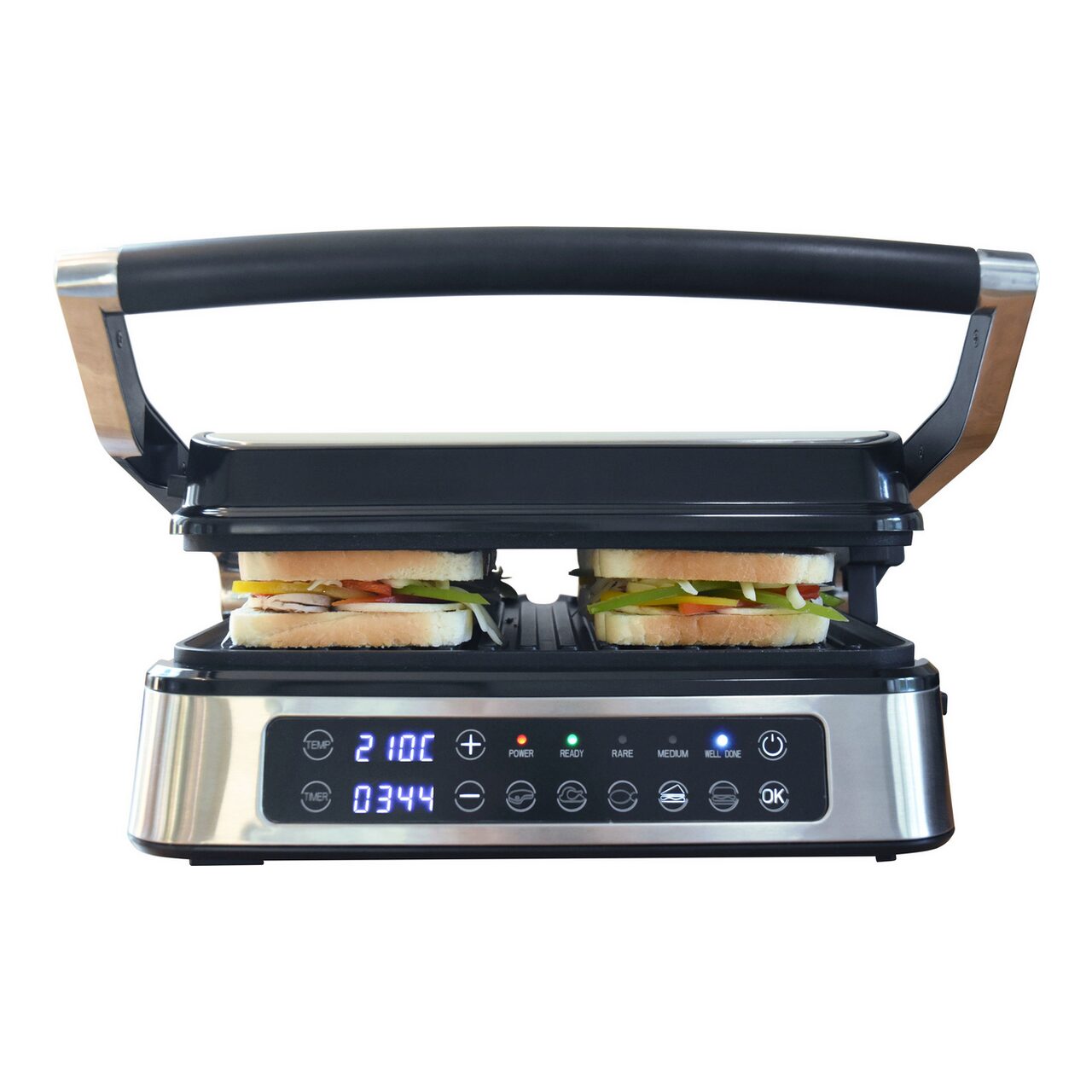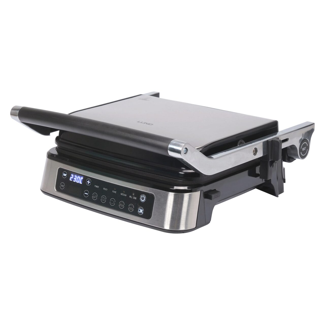 Grătar electric de contact cu putere de 2000W și panou de control digital. Grătarul are tipuri de lucru predefinite: friptură, pui, pește, pâine prăjită, hamburger. În plus, poate indica și trei moduri de prăjire: rare, mediu, bine făcut sau poate seta manual temperatura sau timpul de funcționare. Grătarul electric are plăci mari care pot fi scoase și spălate în mașina de spălat vase.