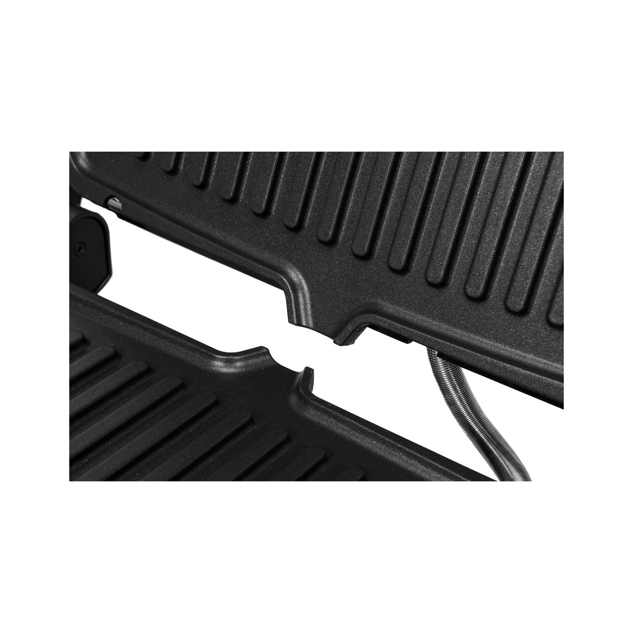 - 5 opțiuni de grătar - grătar pliat (aderă la mâncare), grătar pliat jos (placa superioară nu aderă la mâncare), grătar pliat sus (placa superioară nu aderă la mâncare), grătar desfăcut la 90°, grătar desfăcut la 180°