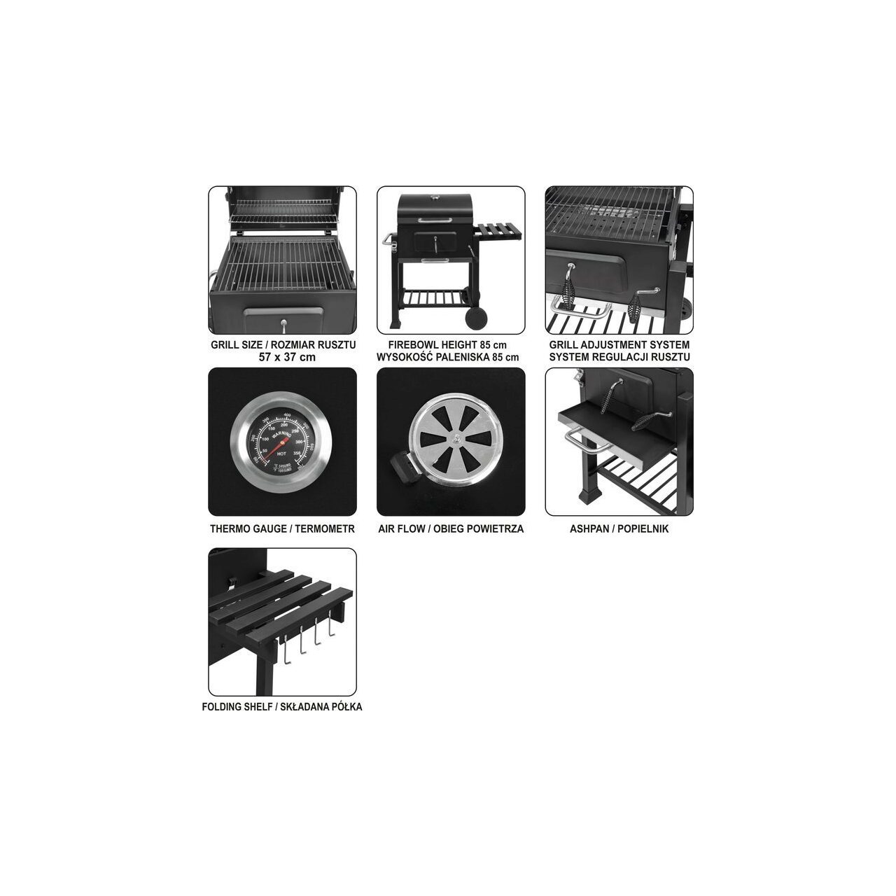 - suprafață de grătar: 57 x 37 cm