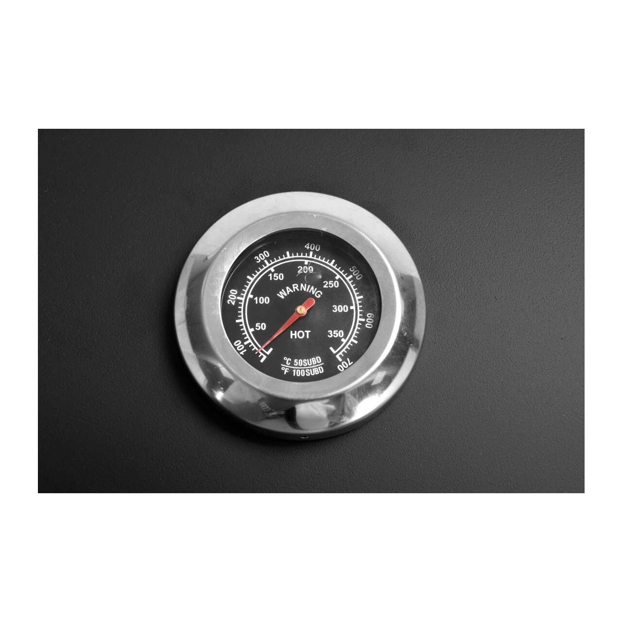 Un grătar de grădină de înaltă clasă pentru pregătirea mâncării în aer liber, cu placă reglabilă înălțime și termometru.
