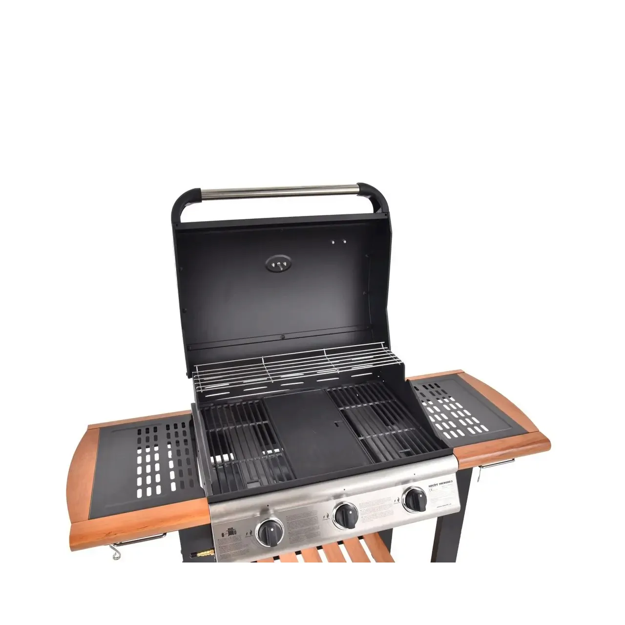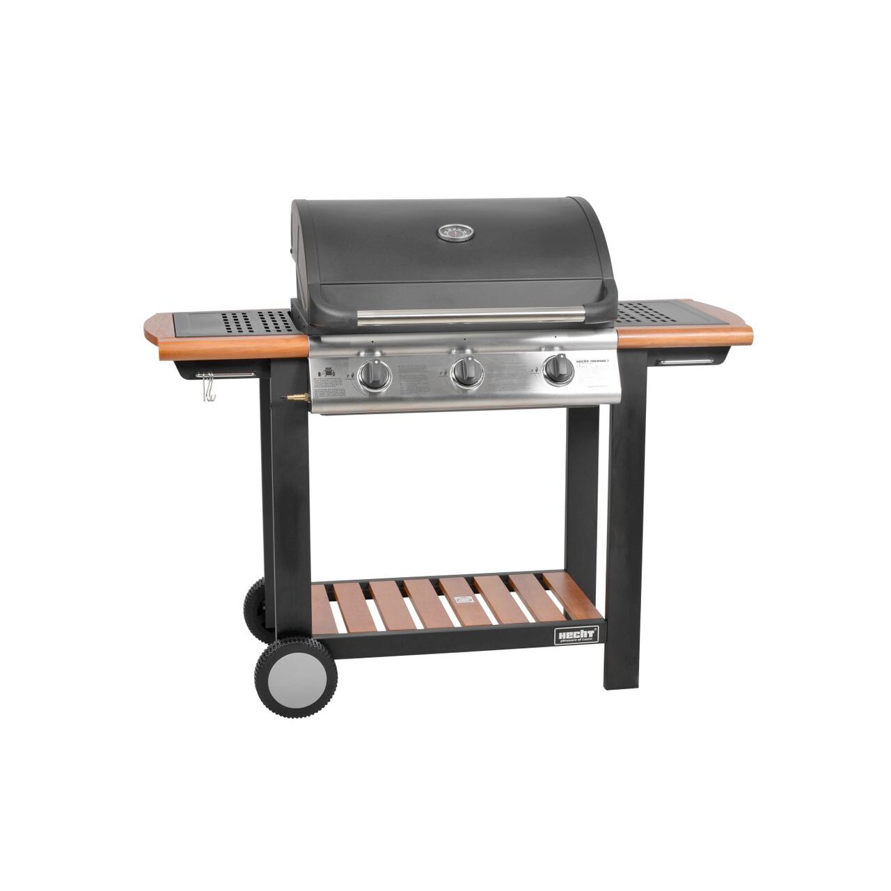 Gratar pe gaz cu 3 arzatoare HECHT FIREWOOD 3, 10.5 kW, gratar din fonta, cu termometru, roti pentru transport, 130x108x50 cm - Informații despre acest produs:
