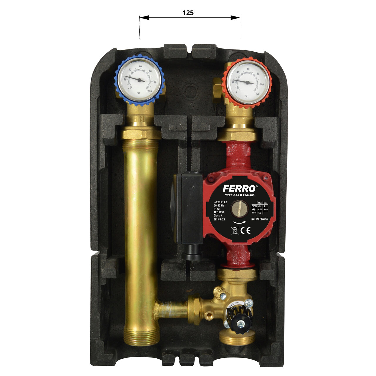 Grup de amestec 1 1/2"x1" pt. instalatii incalzire cu vana 3 cai si pompa GPA II 25‑6‑180, Ferro GMP602GPA - Informații despre acest produs: