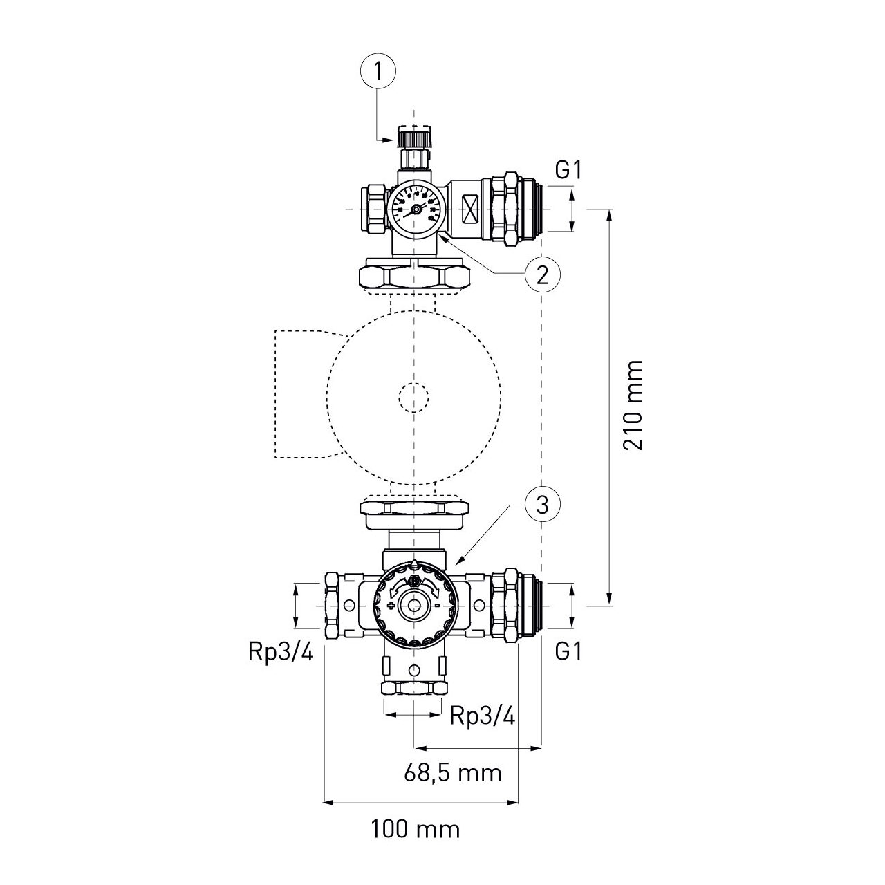 Conceput pentru control precis al agentului termic, acest grup de amestec oferă reglarea temperaturii între 25 - 50 °C, facilitând adaptarea rapidă la cerințele circuitului. Aerisirea este simplificată prin aerisire manuală cu aerisitor integrat, reducând timpii de întrerupere la punerea în funcțiune și la întreținere. Debitarea este susținută de un Kv de 3.5 m3/h, asigurând circulația eficientă în limitele constructive. Monitorizarea vizuală este clară datorită termometrelor cu interval de măsurare 0 - 80, utile pentru verificări operative. Lățimea de 170 mm permite integrarea în spații restrânse, iar garnitura O-ring contribuie la etanșeitatea conexiunilor. Produsul este livrat fără pompă, oferind libertate de configurare în funcție de necesarul instalației.