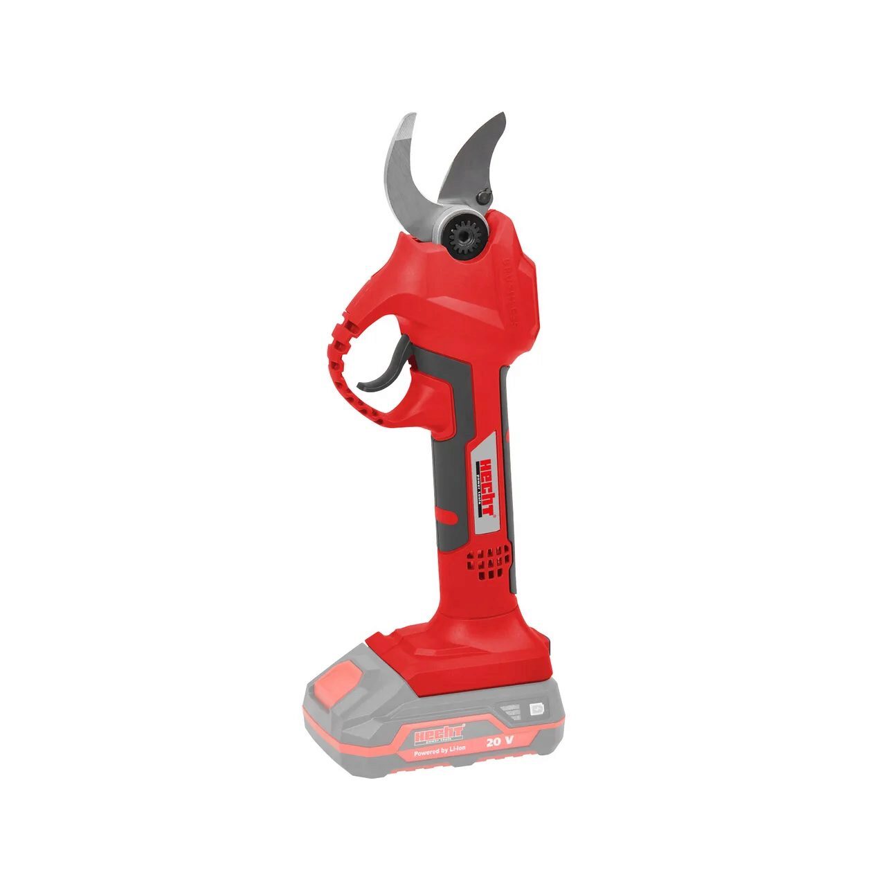 Foarfece de crengi cu acumulator HECHT 1740. Tensiune 20 V DC, diametru maxim de tăiere 30 mm, până la 40 de tăieri pe minut, greutate 0,95 kg.