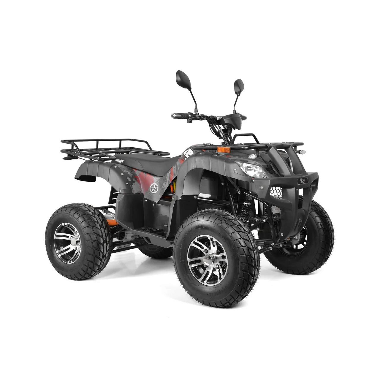ATV-ul este echipat cu frâne de tip tambur pe roțile din față și frâne de disc hidraulice pe roțile din spate. Frânele de tip tambur din față sunt acționate de o pârghie de pe ghidon, iar frânele cu disc hidraulice din spate sunt acționate de pedală, cu piciorul drept. Motorul este montat pe puntea spate cu suspensie, iar transmisia de la motor la punte se face prin intermediul unei cutii de viteze închise. Roțile din față sunt suspendate individual pe brațe de suspensie separate. Pe jantele din aluminiu bine concepute sunt montate anvelope mari, cu un model adânc al benzii de rulare, asigurând o tracțiune excelentă chiar și pe teren accidentat. Un tahometru digital este montat pe ghidon. Datorită aspectului său agresiv și accelerației sale, vehiculul se apropie de performanța "adultă" a ATV-urilor cu motor termic. Un avantaj semnificativ este funcționarea complet silențioasă și lipsa emisiilor. Astfel, poate fi utilizat în zone în care zgomotul sau mirosul emisiilor ar putea deranja mediul înconjurător.