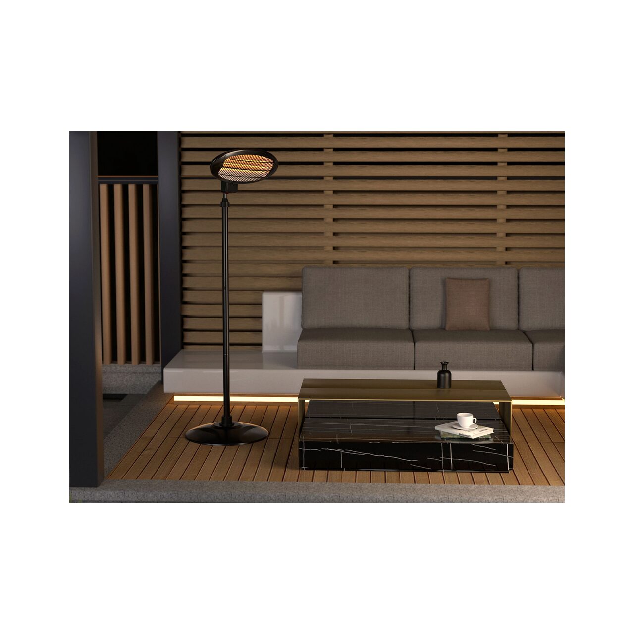 Încălzitorul cu infraroșu este perfect pentru încălzirea zonei de lucru sau de relaxare în timpul zilelor și nopților reci. Echipat cu o lampă de cuarț, încălzește o suprafață de până la 25 m2 . Clasa de protecție IP34 permite utilizarea încălzitorului în încăperi închise, de ex. case, garaje, precum și pe terase și balcoane, evitând în același timp expunerea la ploi abundente.