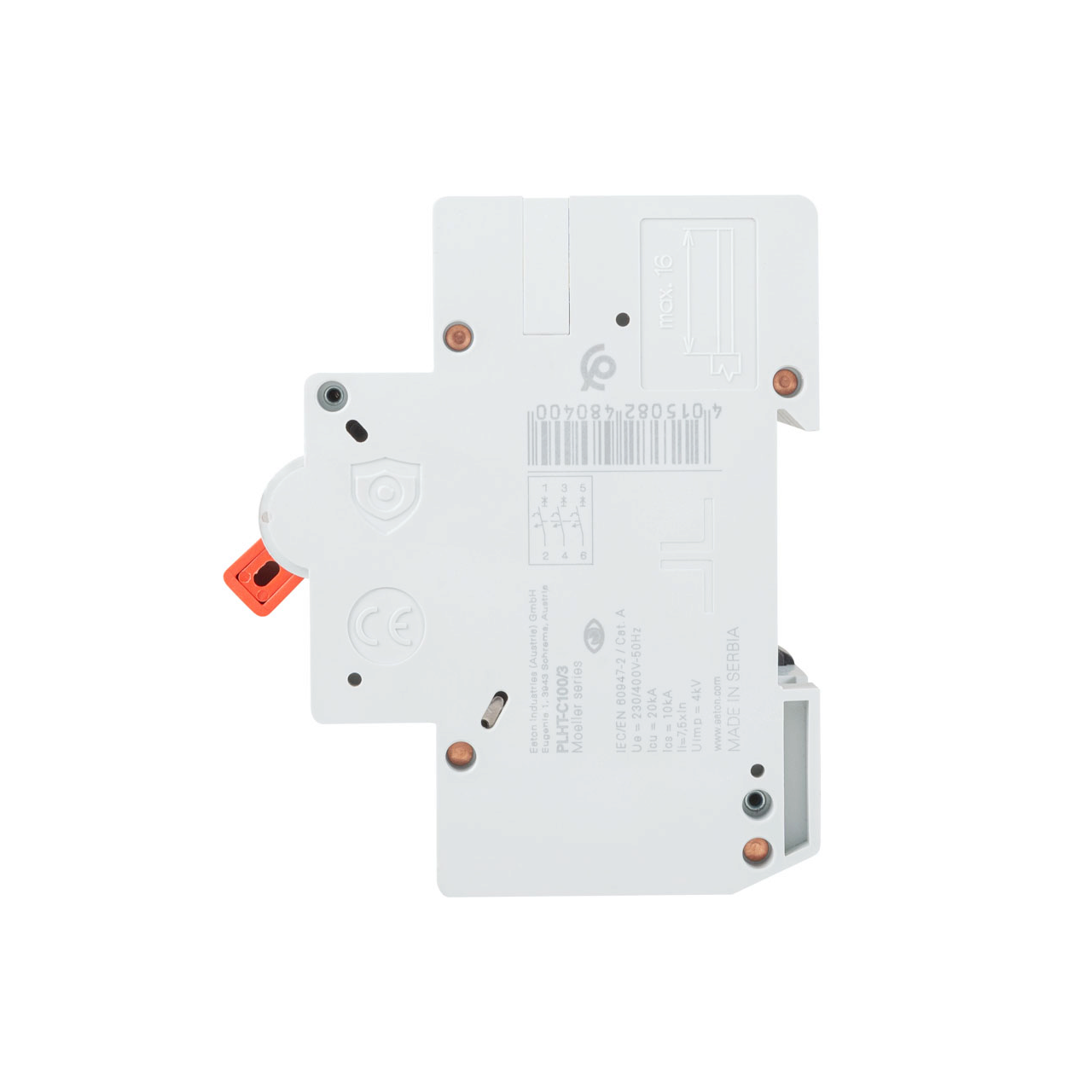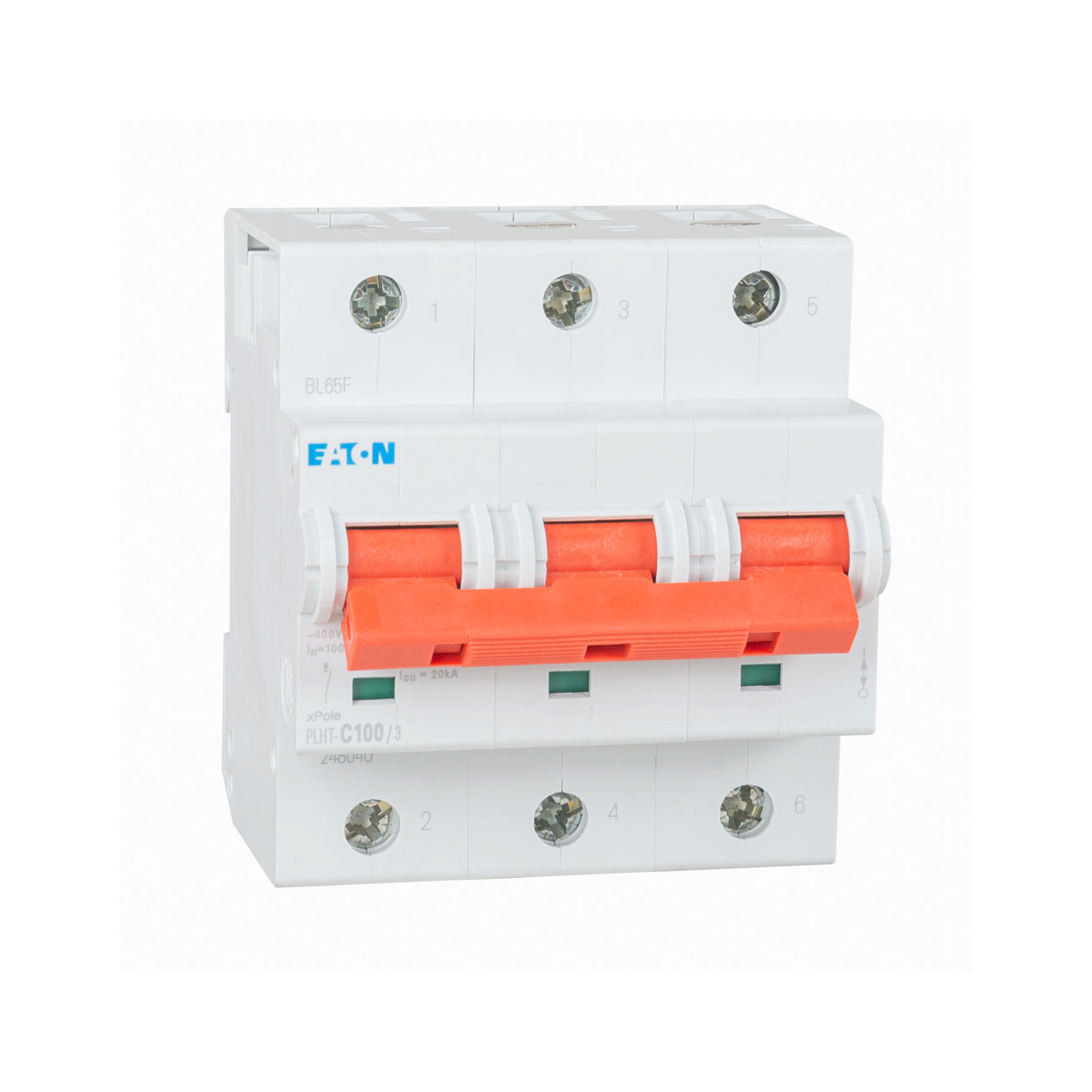 Gama de protectii marca Eaton este atent selectata si produsa pentru a oferi solutii inovative si fiabile pentru problemele dumneavoastra. Orice dificultate ati putea intalni, noi va stam la dispozitie cu produse variate si potrivite atat financiar, cat si calitativ. In acest sens, prezentam un model de intrerupator automat de tip 3P ce functioneaza cu un curent nominal de 100A, la o frecventa nominala de 50-60Hz. De asemenea, capacitatea de rupere nominala are valoarea de 20kA pentru o curba caracteristica de tip C.