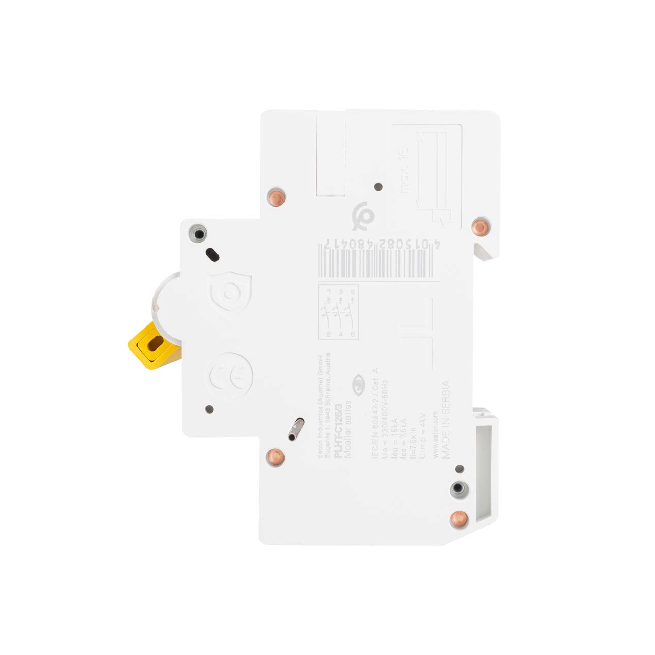 Gama de protectii marca Eaton este atent selectata si produsa pentru a oferi solutii inovative si fiabile pentru problemele dumneavoastra. Orice dificultate ati putea intalni, noi va stam la dispozitie cu produse variate si potrivite atat financiar, cat si calitativ. In acest sens, prezentam un model de intrerupator automat de tip 3P ce functioneaza cu un curent nominal de 125A, la o frecventa nominala de 50-60Hz. De asemenea, capacitatea de rupere nominala are valoarea de 15kA pentru o curba caracteristica de tip C.