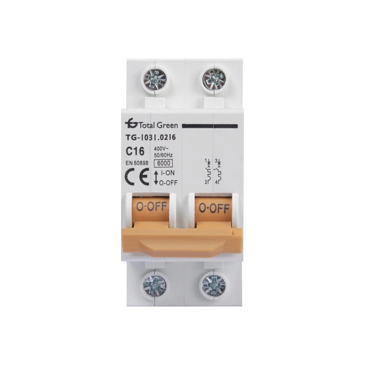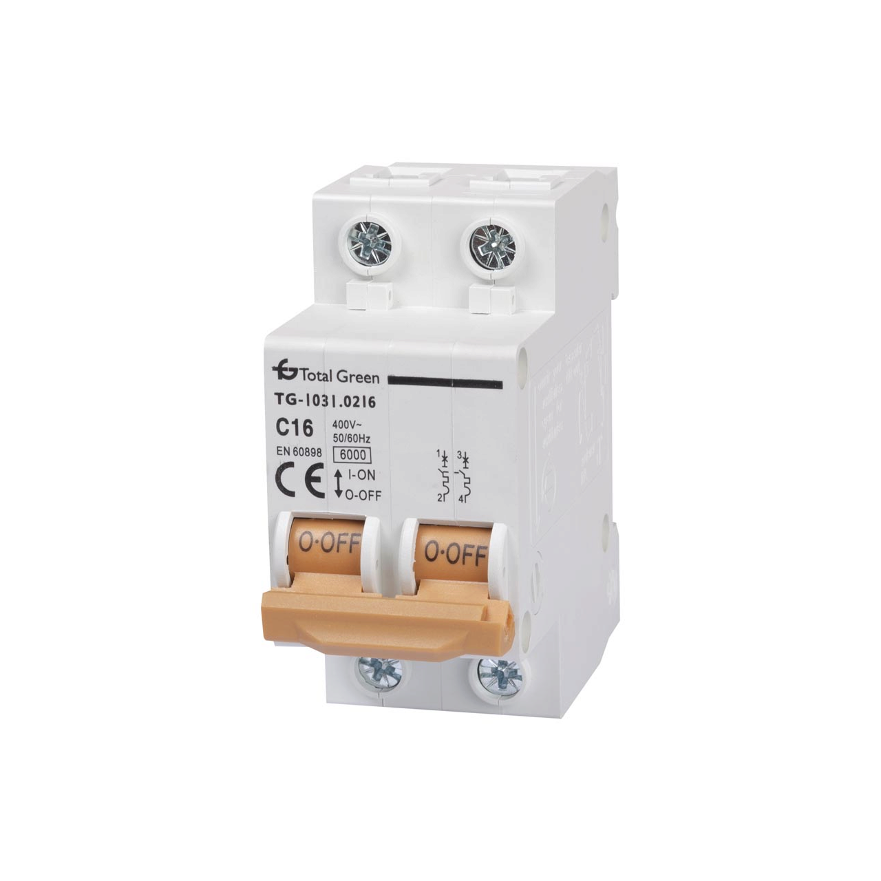 Gama de protectii marca Total Green este atent selectata si produsa pentru a oferi solutii inovative si fiabile pentru problemele dumneavoastra. Orice dificultate ati putea intalni, noi va stam la dispozitie cu produse variate si potrivite atat financiar, cat si calitativ. In acest sens, prezentam un model de intrerupator automat de tip bipolar ce functioneaza cu un curent nominal de 16A, la o frecventa nominala de 50-60Hz. De asemenea, capacitatea de rupere nominala are valoarea de 6kA pentru o curba caracteristica de tip C.