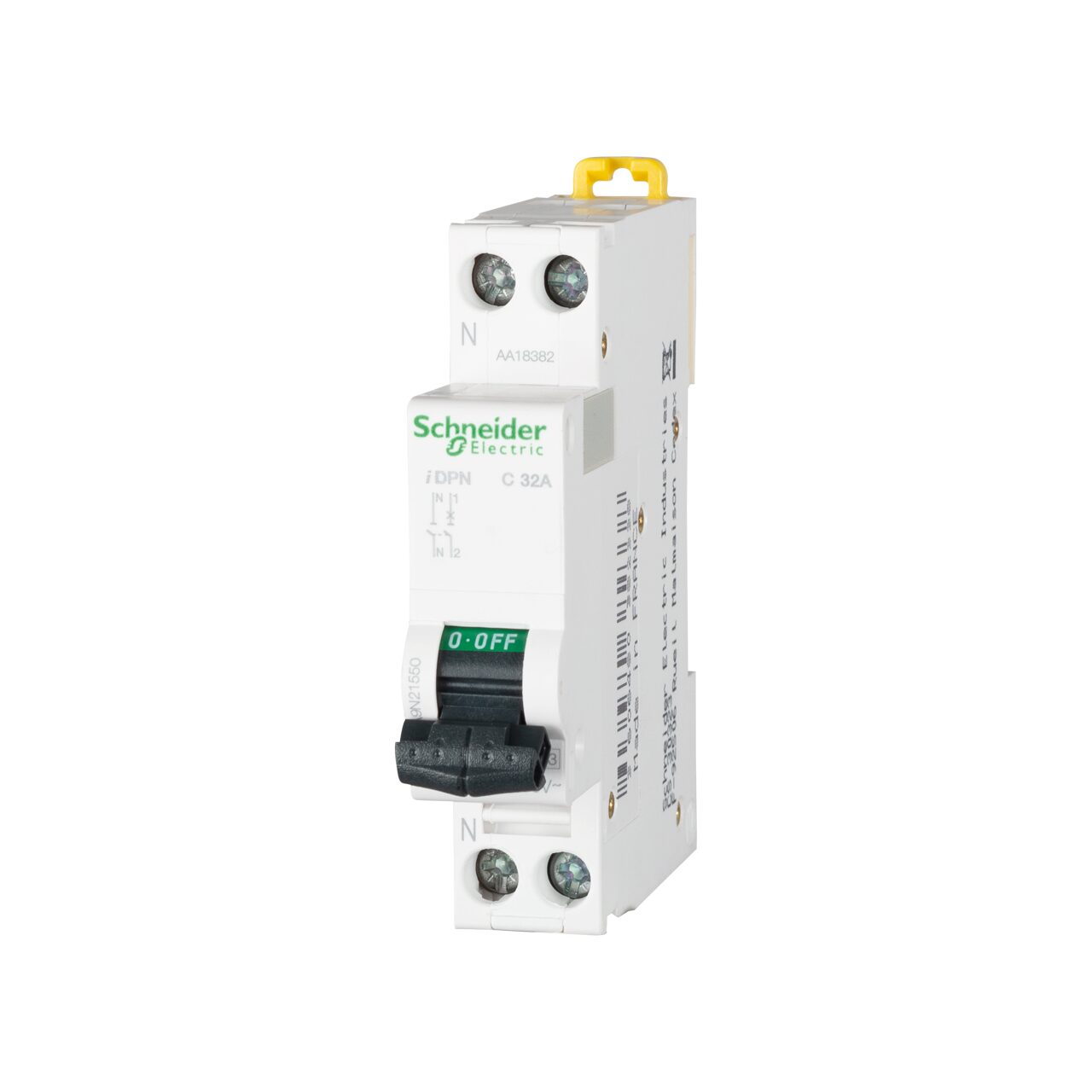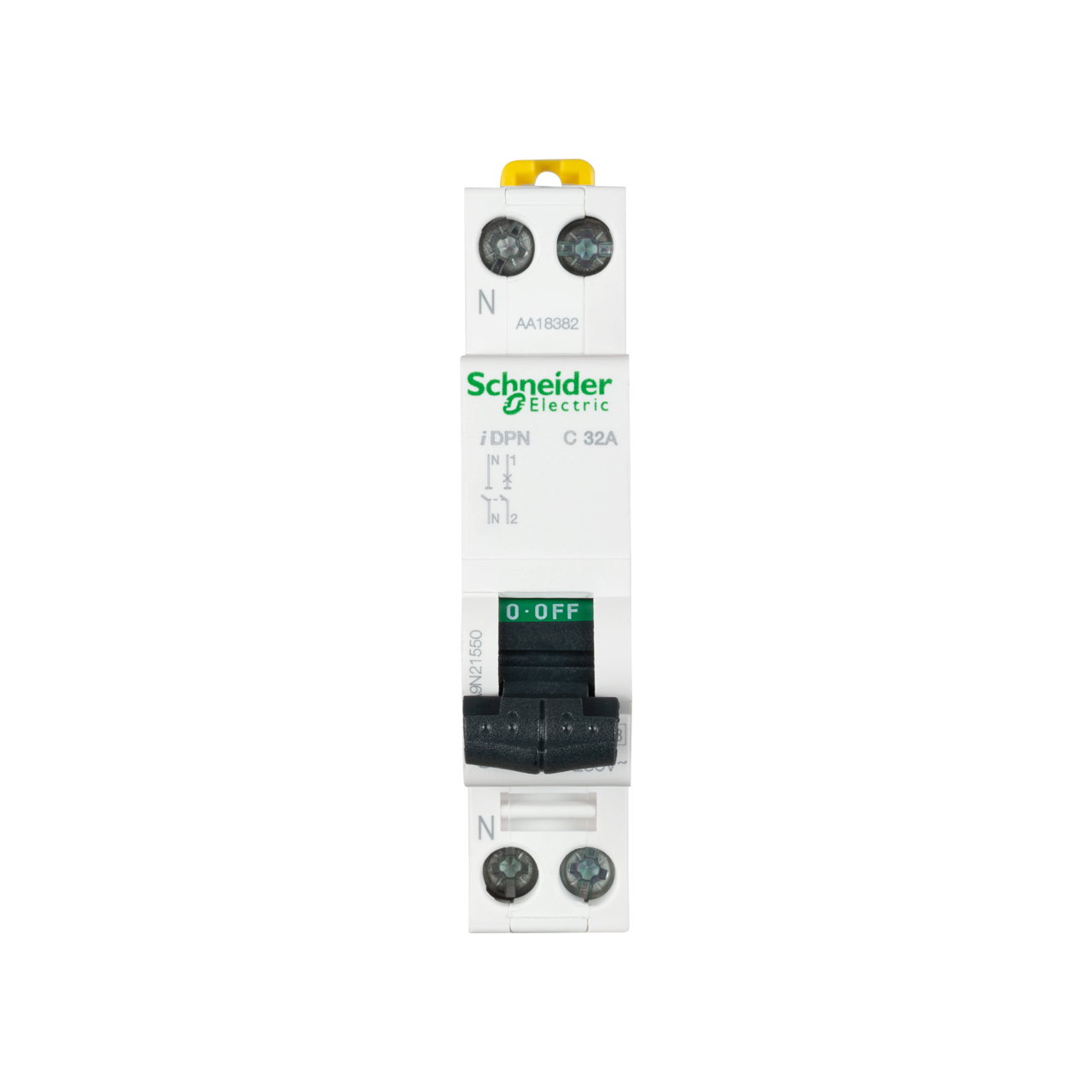 Gama de protectii marca Schneider este atent selectata si produsa pentru a oferi solutii inovative si fiabile pentru problemele dumneavoastra. Orice dificultate ati putea intalni, noi va stam la dispozitie cu produse variate si potrivite atat financiar, cat si calitativ. In acest sens, prezentam un model de intrerupator automat de tip 1P+N ce functioneaza cu un curent nominal de 32A, la o frecventa nominala de 50-60Hz. De asemenea, capacitatea de rupere nominala are valoarea de 4.5kA pentru o curba caracteristica de tip C.
