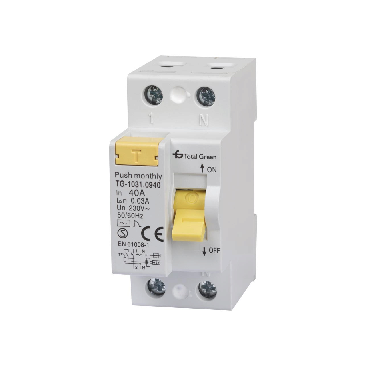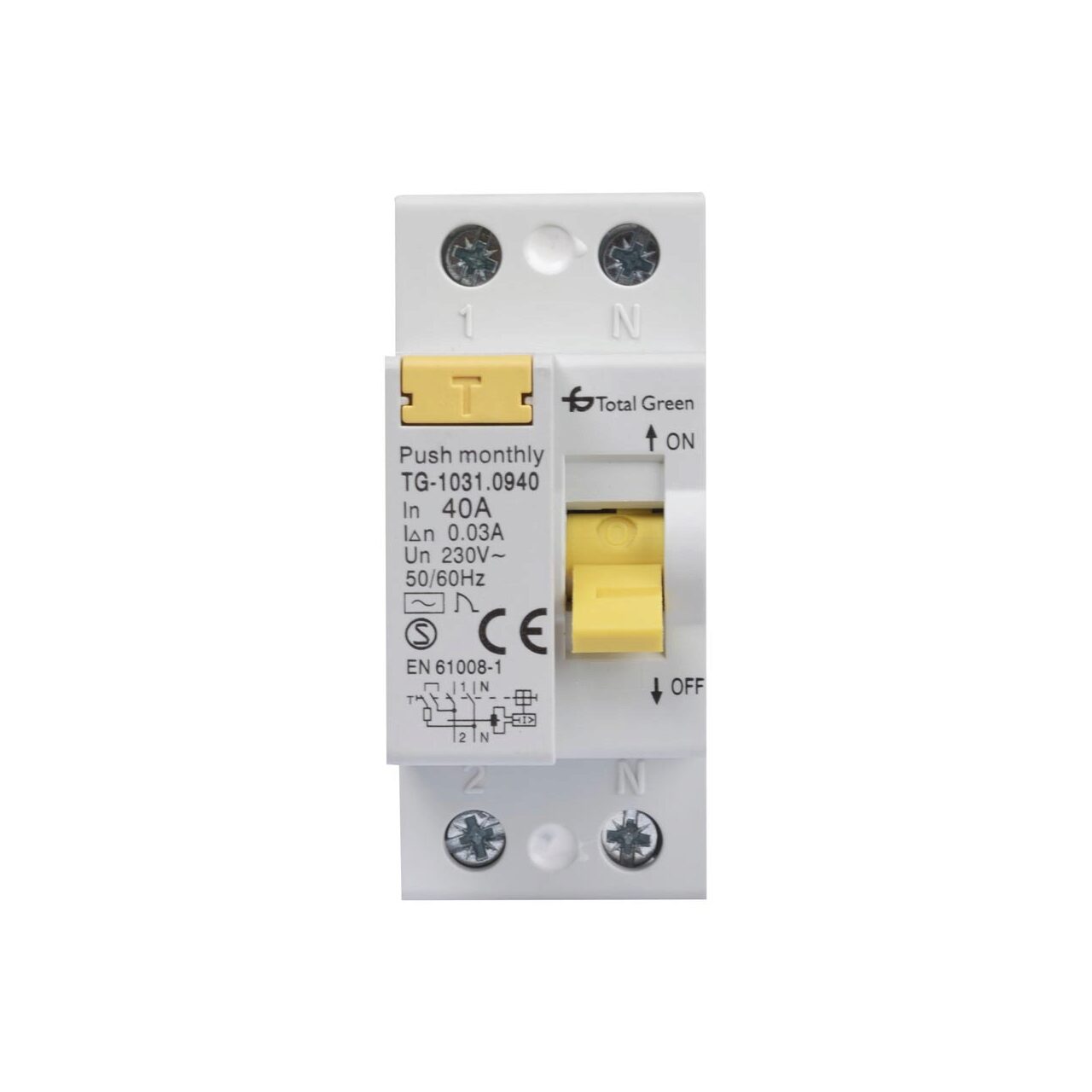 Gama de protectii marca Total Green este atent selectata si produsa pentru a oferi solutii inovative si fiabile pentru problemele dumneavoastra. Orice dificultate ati putea intalni, noi va stam la dispozitie cu produse variate si potrivite atat financiar, cat si calitativ. In acest sens, prezentam un model de intrerupator diferential de tip 2P ce functioneaza cu un curent nominal de 40A, la o frecventa nominala de 50-60Hz. De asemenea, capacitatea de rupere nominala are valoarea de 6kA pentru o curba de declansare de tip C si un factor de protectie egal cu IP20.