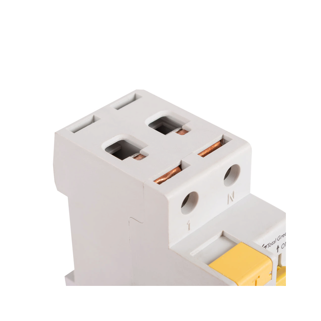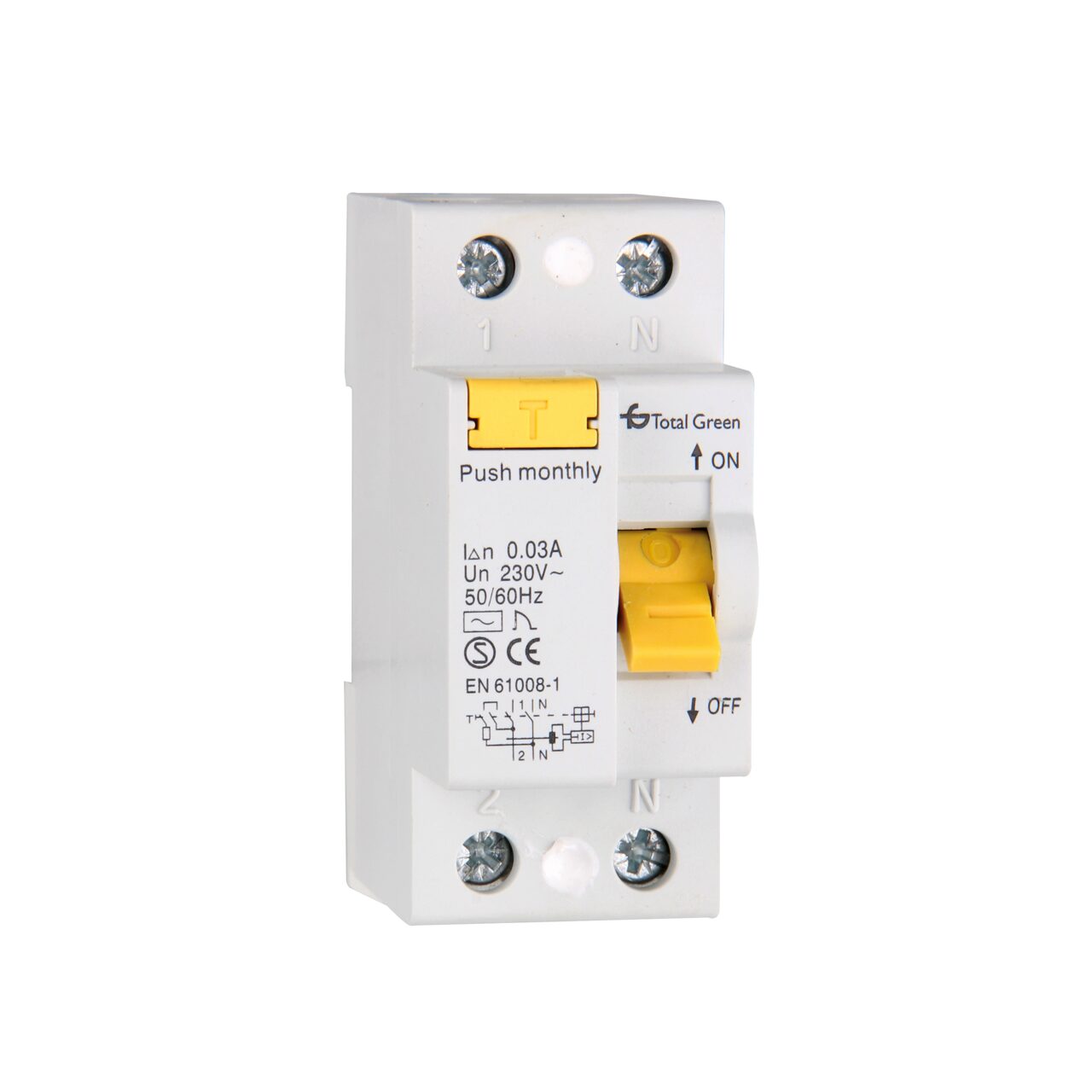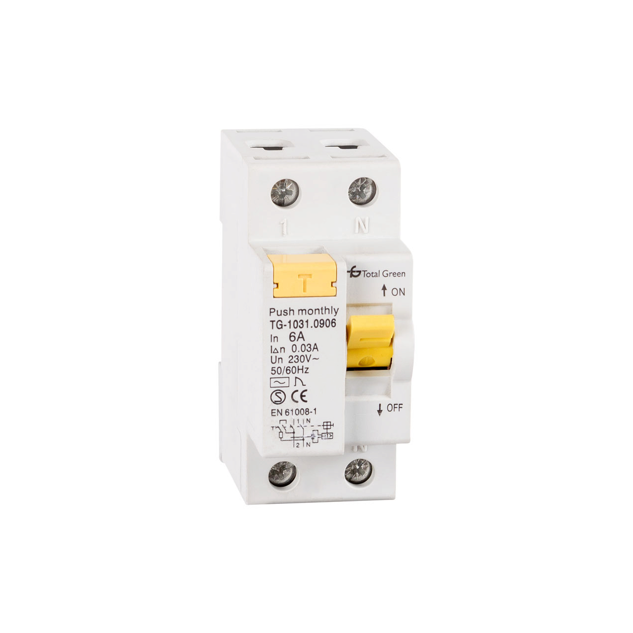 Gama de protectii marca Total Green este atent selectata si produsa pentru a oferi solutii inovative si fiabile pentru problemele dumneavoastra. Orice dificultate ati putea intalni, noi va stam la dispozitie cu produse variate si potrivite atat financiar, cat si calitativ. In acest sens, prezentam un model de intrerupator diferential de tip 2P ce functioneaza cu un curent nominal de 6A si cu o sensibilitate de 30mA. De asemenea, capacitatea de rupere nominala are valoarea de 6kA.