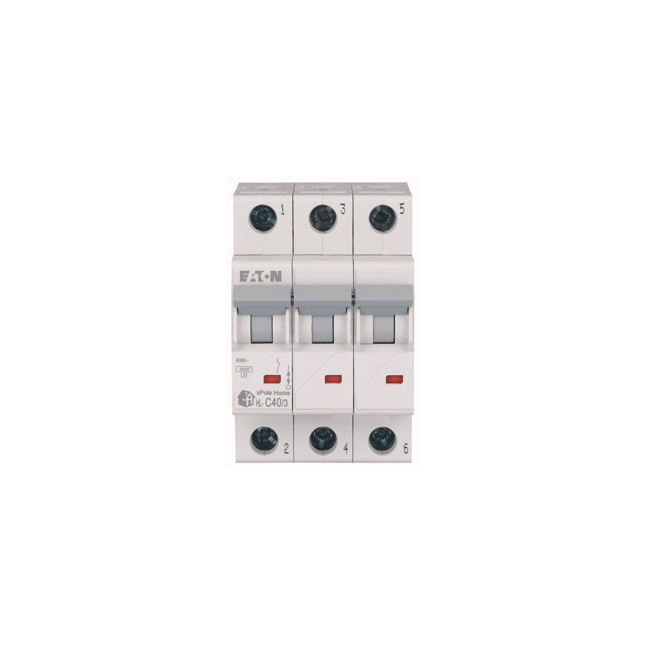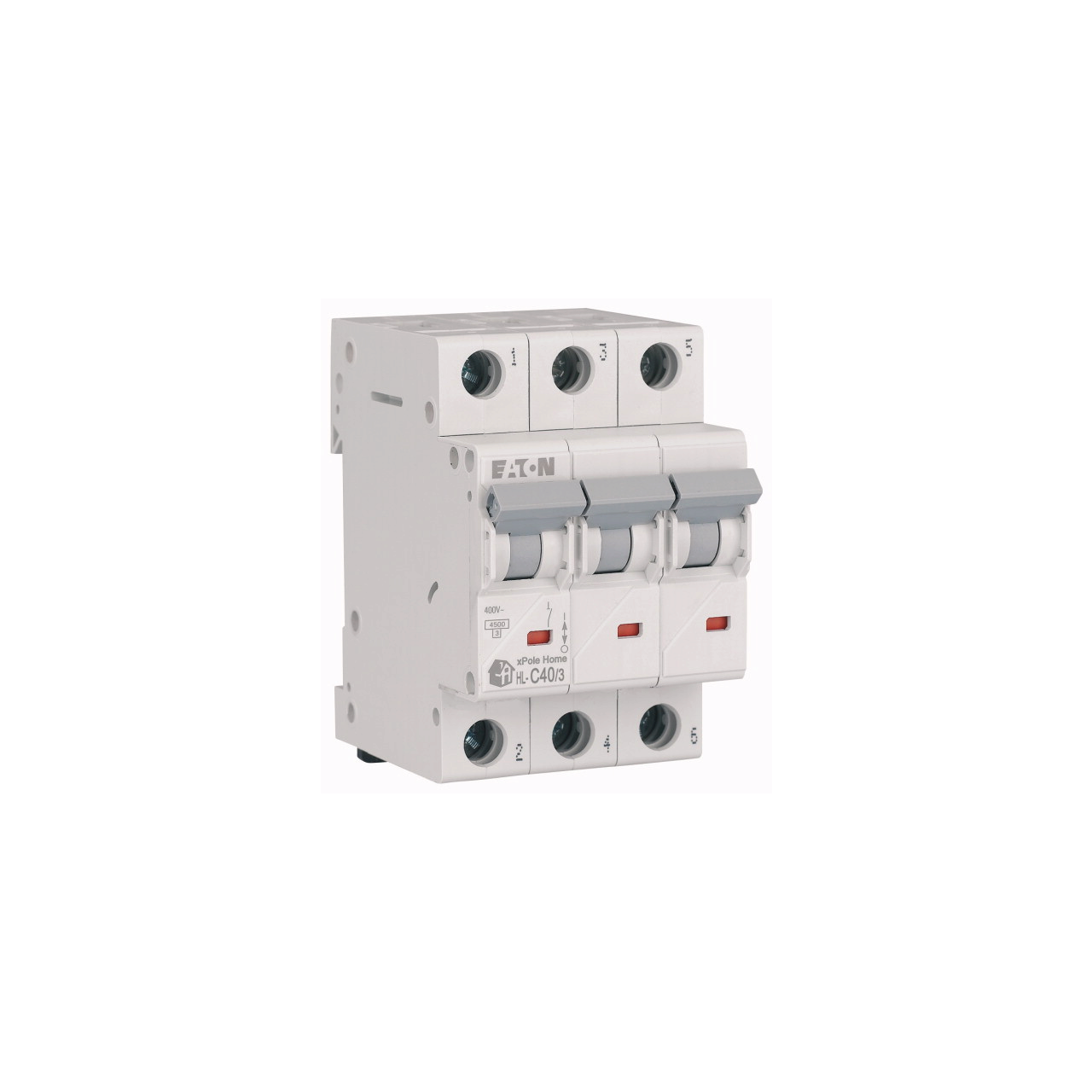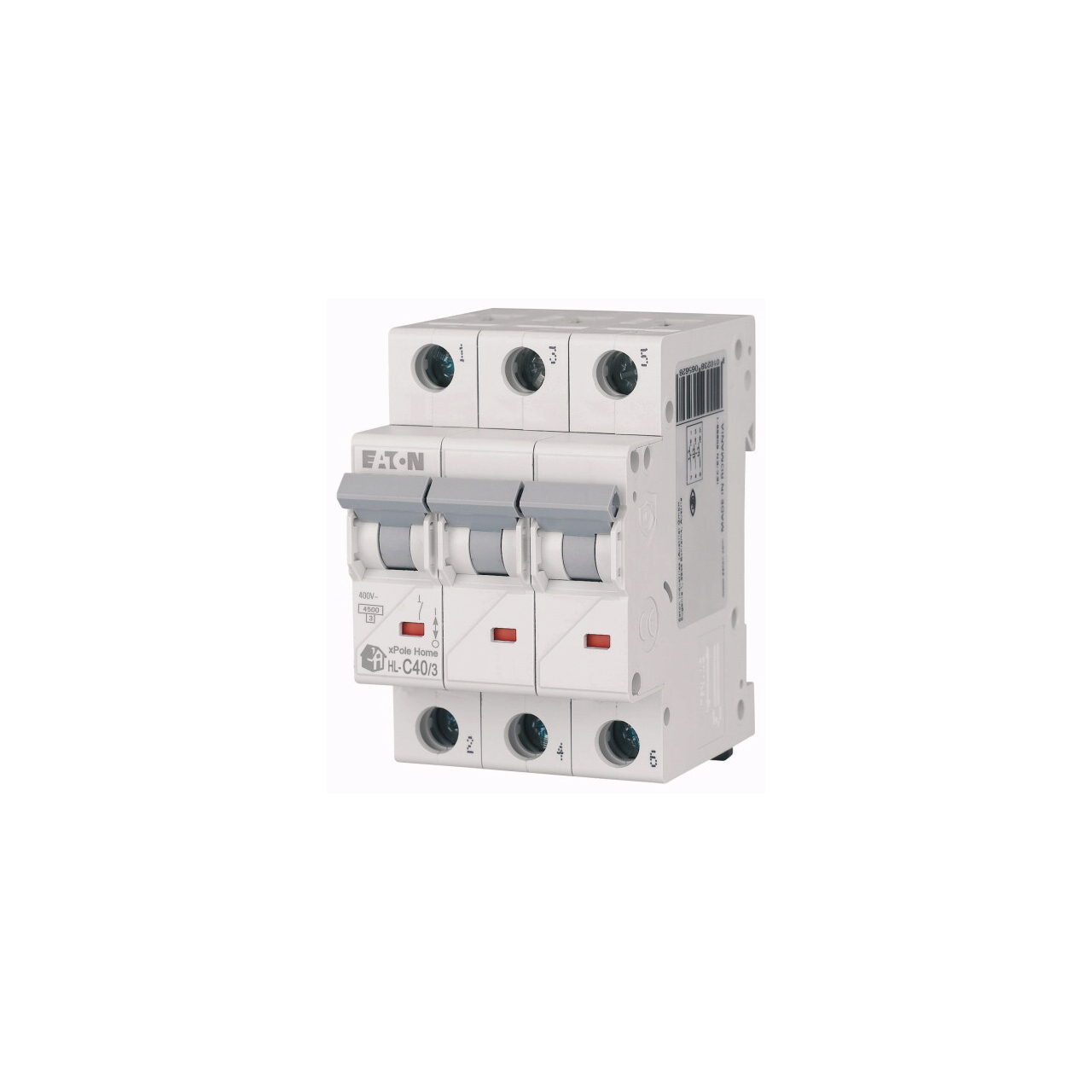 Gama de protectii marca Eaton este atent selectata si produsa pentru a oferi solutii inovative si fiabile pentru problemele dumneavoastra. Orice dificultate ati putea intalni, noi va stam la dispozitie cu produse variate si potrivite atat financiar, cat si calitativ. In acest sens, prezentam un model de intrerupator de tip HL-C40/3 cu un numar de 3P+N ce functioneaza cu un curent nominal de 40A, la o frecventa nominala de 50-60Hz si la o tensiune nominala de 230V. De asemenea, capacitatea de rupere nominala are valoarea de 4.5kA pentru o curba de declansare de tip C si un factor de protectie IP20. Acest produs se incadreaza intr-o temperatura de functionare de -25°C pana la 75 °C.