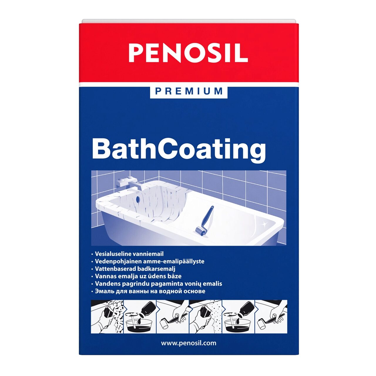 PENOSIL Premium BathCoating este o vopsea epoxidică pe bază de apă pentru restaurarea căzilor. Nu are miros în timpul aplicării, este igienică și după uscare poate intra în contact cu alimentele. Vopsea epoxidică pe bază de apă, emailată, inodoră, pelicula de vopsea uscată permite contactul cu alimentele, ecologică, rezistentă la bacterii şi mucegaiuri, setul include toate elementele necesare recondiţionării unei căzi de baie din fontă, procesul de vopsire constă în două etape, cada este gata de utilizare la 7 zile după vopsire.