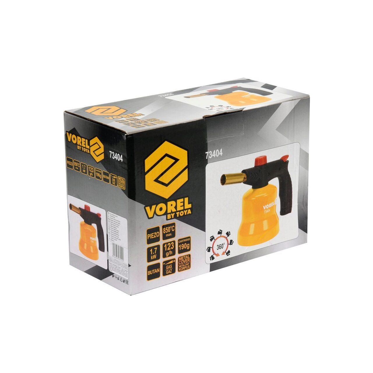 Caracteristici produsLampă de lipit cu aprindere piezo cu gaz de către VOREL 73404 pentru lucru la un unghi de 360 ° .