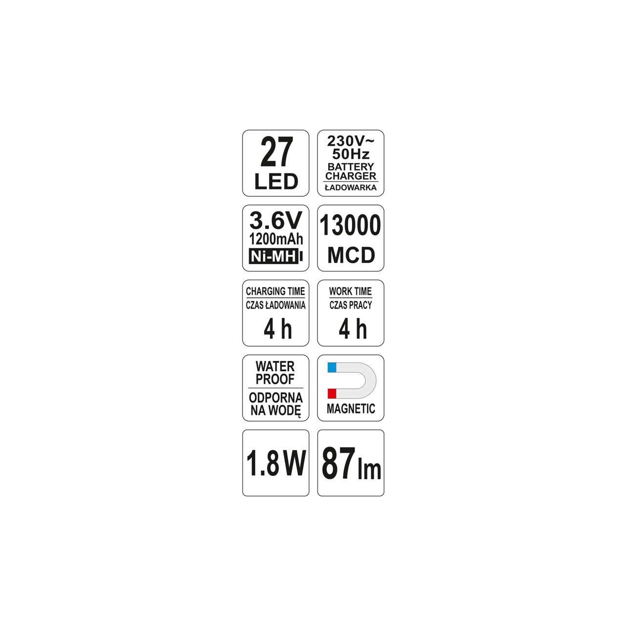 Lampa magnetica cu 27 led reincarcabila Yato YT-08523 - Informații despre acest produs: