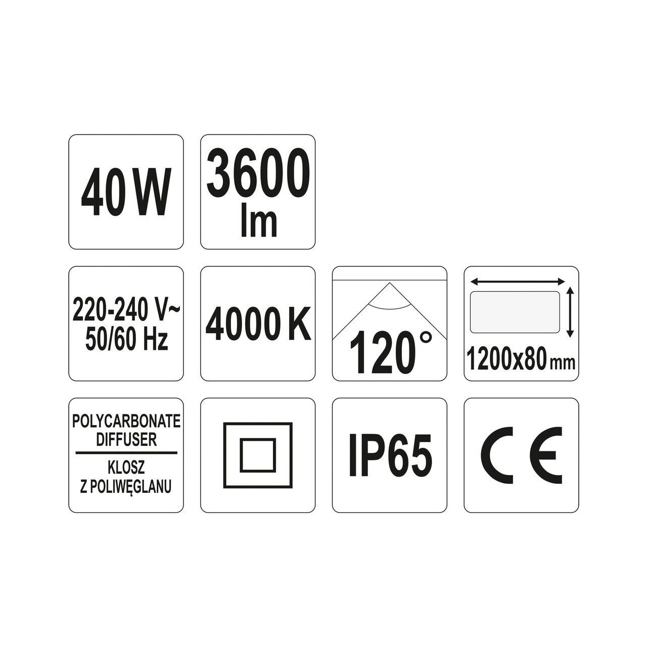 Lampa tip neon cu led ip65, 40 w, 4000 k Yato YT-81961 - Informații despre acest produs: