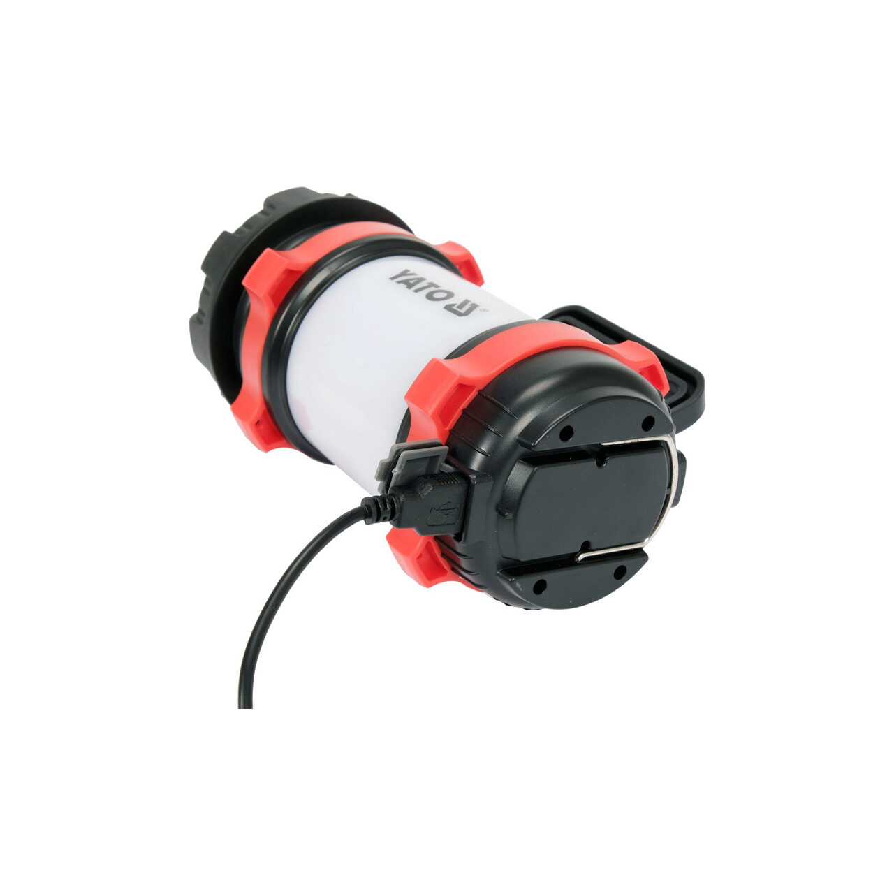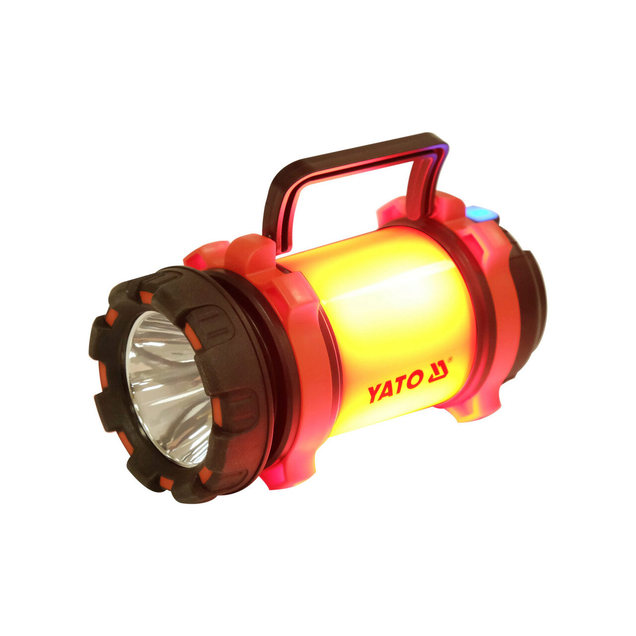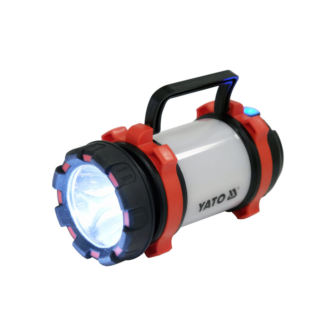 Spotul multifuncțional YATO, datorită designului său și celor 6 moduri de funcționare, este perfect pentru camping, excursii, treburi casnice sau ca lampă de avertizare pentru mașină. Lumina principală oferă o rază de acțiune de 500 m și o iluminare de 380 lumeni. Echipat cu o baterie litiu-ion puternică de 3,7 V și 3000 mAh, acesta va oferi o autonomie de minimum 4 ore.