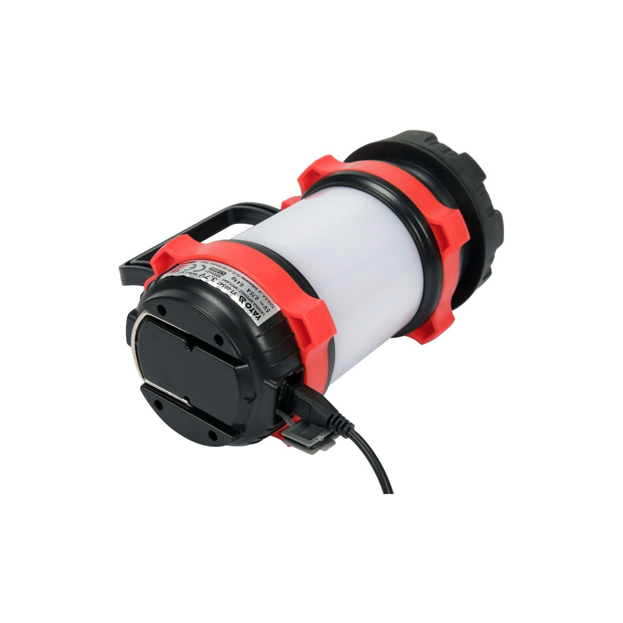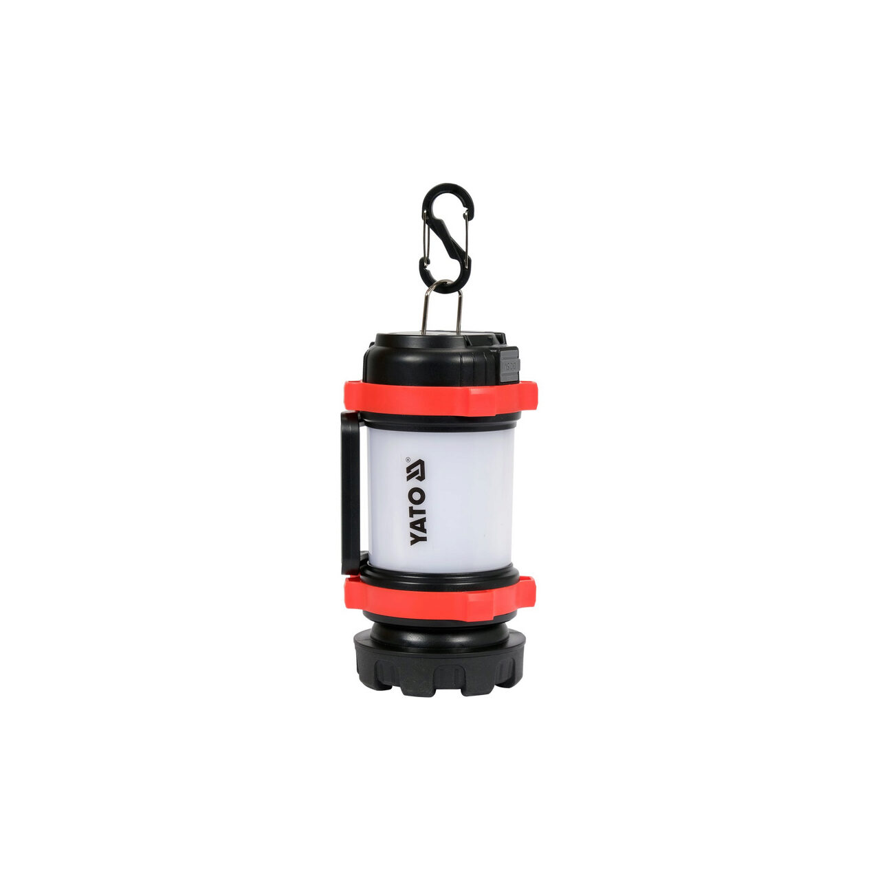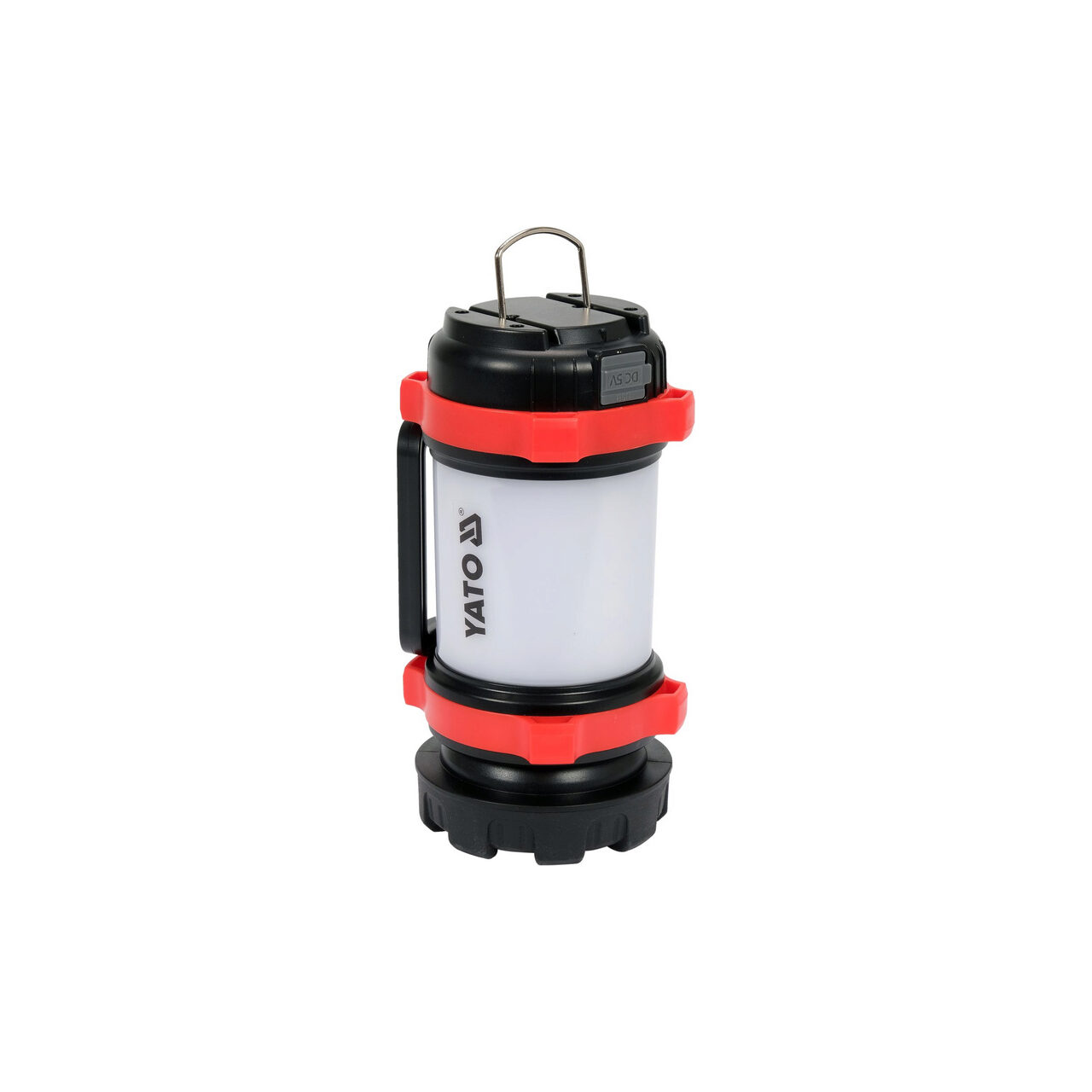 Spotul multifuncțional YATO, datorită designului său și celor 6 moduri de funcționare, este perfect pentru camping, excursii, treburi casnice sau ca lampă de avertizare pentru mașină. Lumina principală oferă o rază de acțiune de 500 m și o iluminare de 380 lumeni. Echipat cu o baterie litiu-ion puternică de 3,7 V și 3000 mAh, acesta va oferi o autonomie de minimum 4 ore.