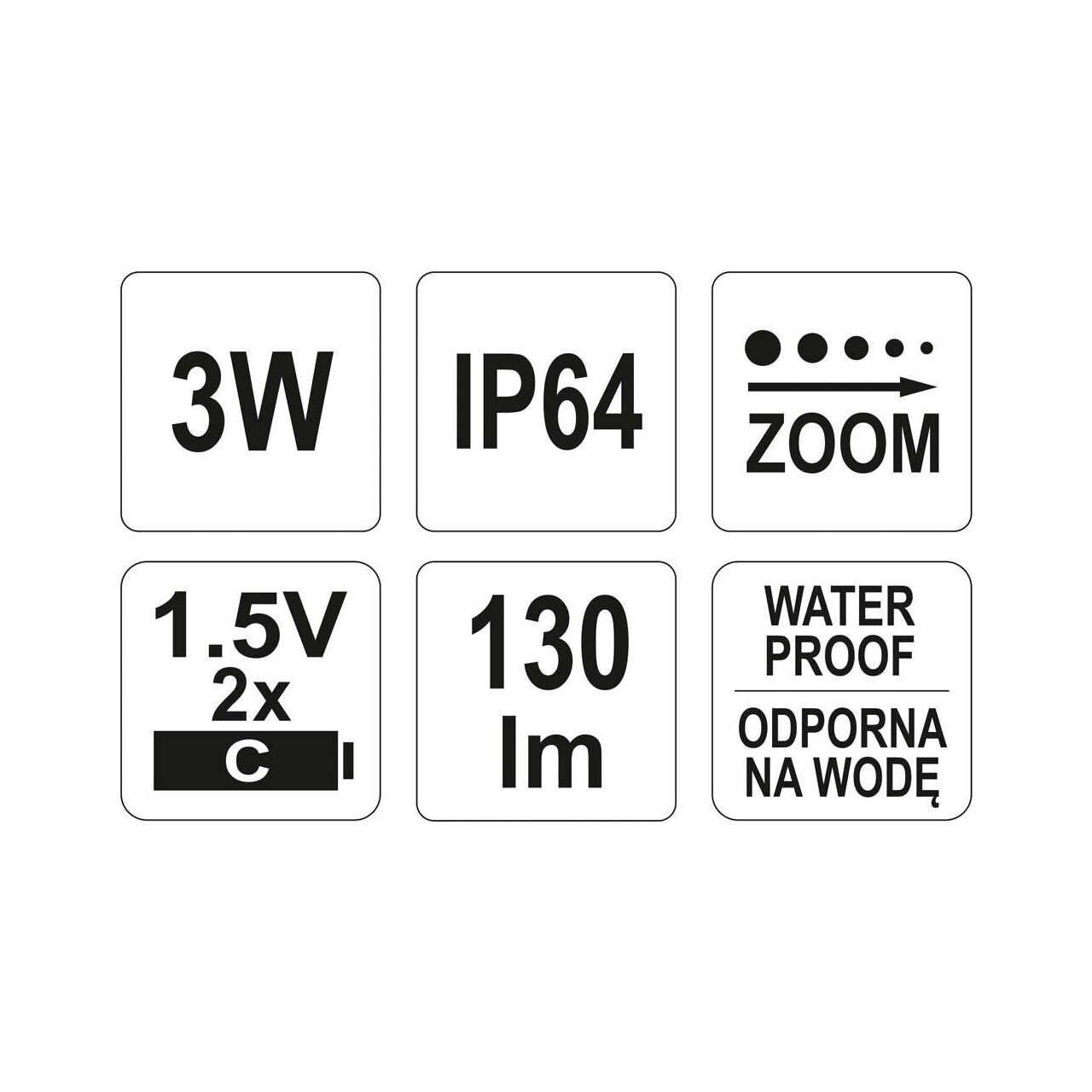 Lanterna led 3w cu functie zoo m - 130l m Yato YT-08577 - Informații despre acest produs:
