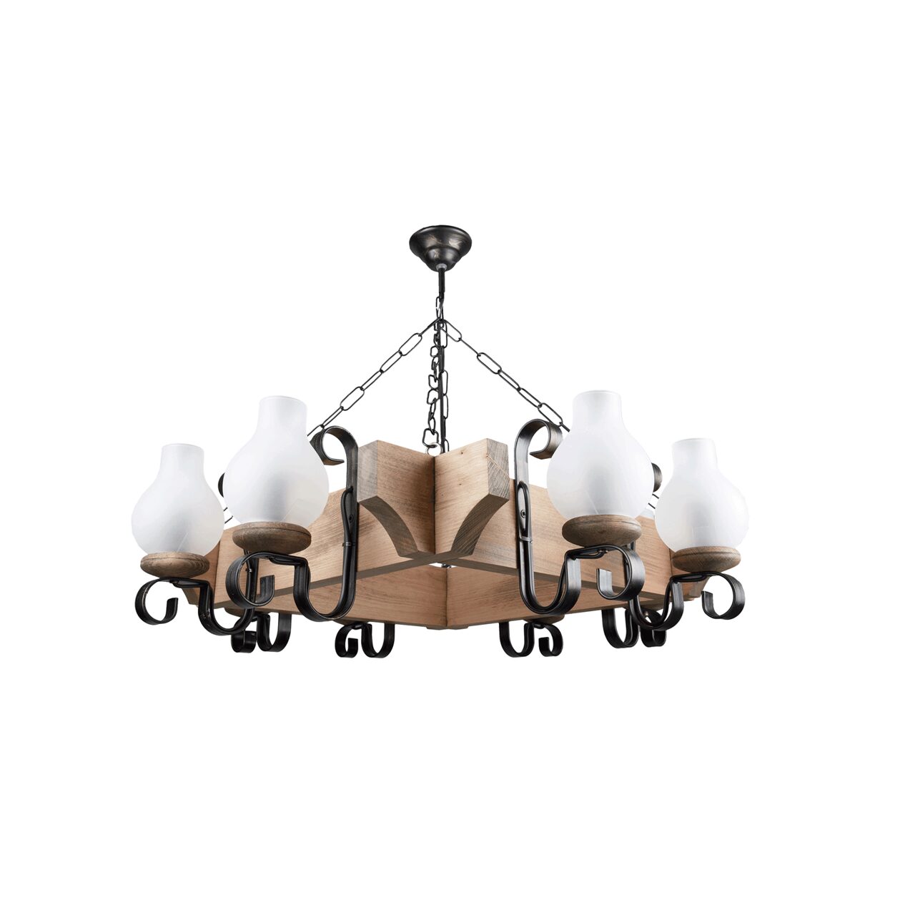 Produsele marca Erste reprezinta o gama variata de corpuri de iluminat decorative ce fac din orice spatiu cel mai confortabil loc in care te poti afla. Acestea au un design special si modern ce le face sa fie potrivite in orice fel de imprejurare. Modelul actual din lemn de nuc, in combinatie cu un abajur din sticla de culoare alba cu aspect antichizat, este alegerea potrivita pentru a satisface cele mai exigente gusturi. Functioneaza cu un numar de opt surse de tip E14, la o putere de 40W. Factorul de protectie caracteristic IP20 fac din acest corp de iluminat o componenta speciala a spatiului dumneavoastra.
