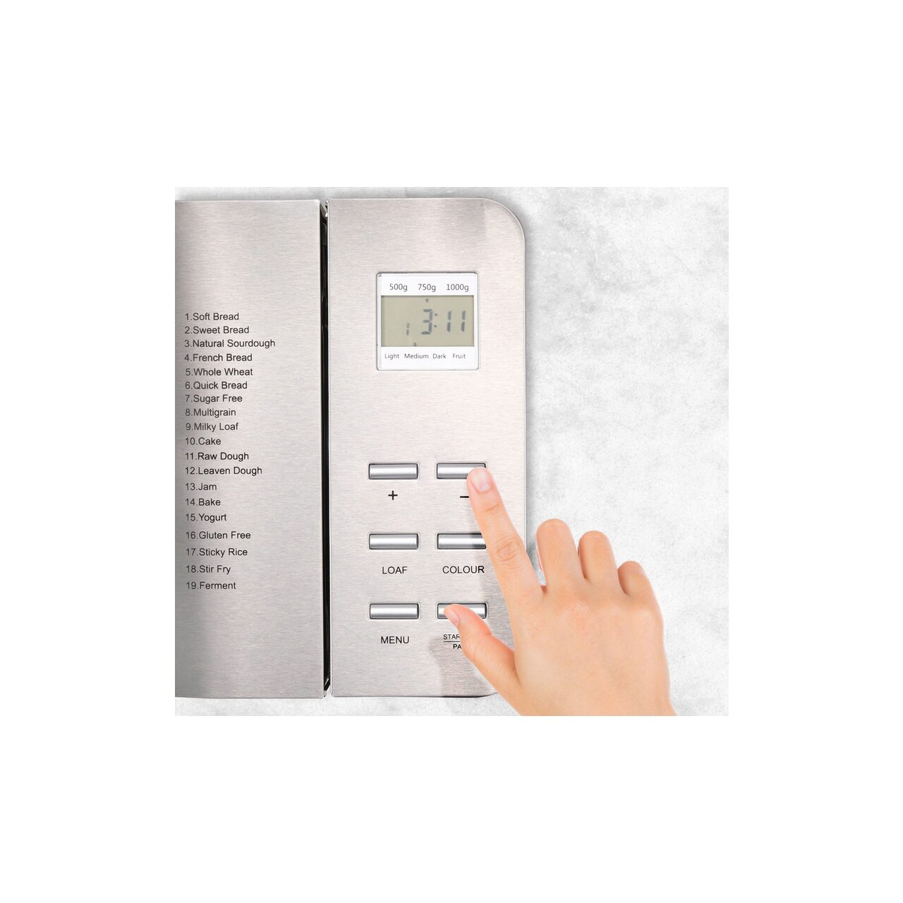 Mașină de făcut pâine cu 19 programe automate pentru coacerea pâinii, prepararea prăjiturilor, iaurtului, gemului, orezului glutinos și prăjirea. Pe lângă program, utilizatorul selectează și dimensiunea pâinii și gradul de rumenire a crustei. Un avantaj suplimentar este funcția de pornire întârziată , care vă permite să programați dispozitivul astfel încât pâinea să crească în timp ce mâncarea este pregătită.