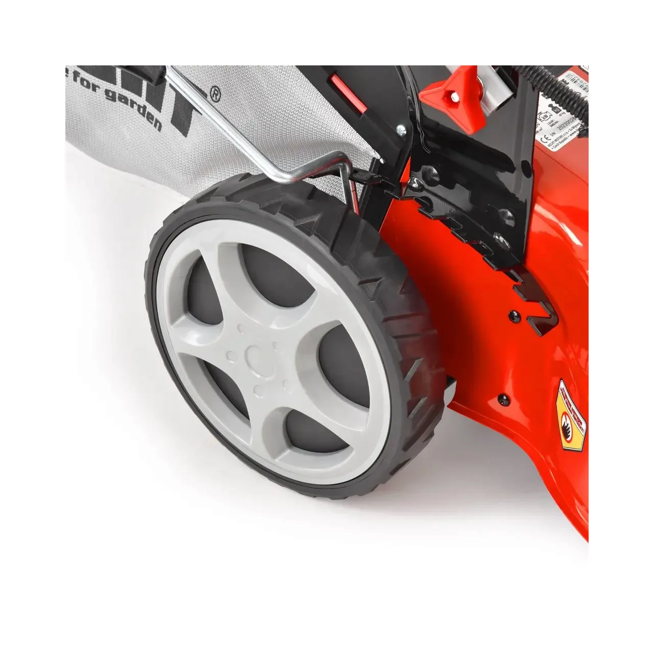- Rotile fata de 8 inci si rotile spate de 10 inci imbunatatesc manevrabilitatea la cosire si sunt mai degraba o exceptie in aceasta categorie (continand rulmenti cu bile)