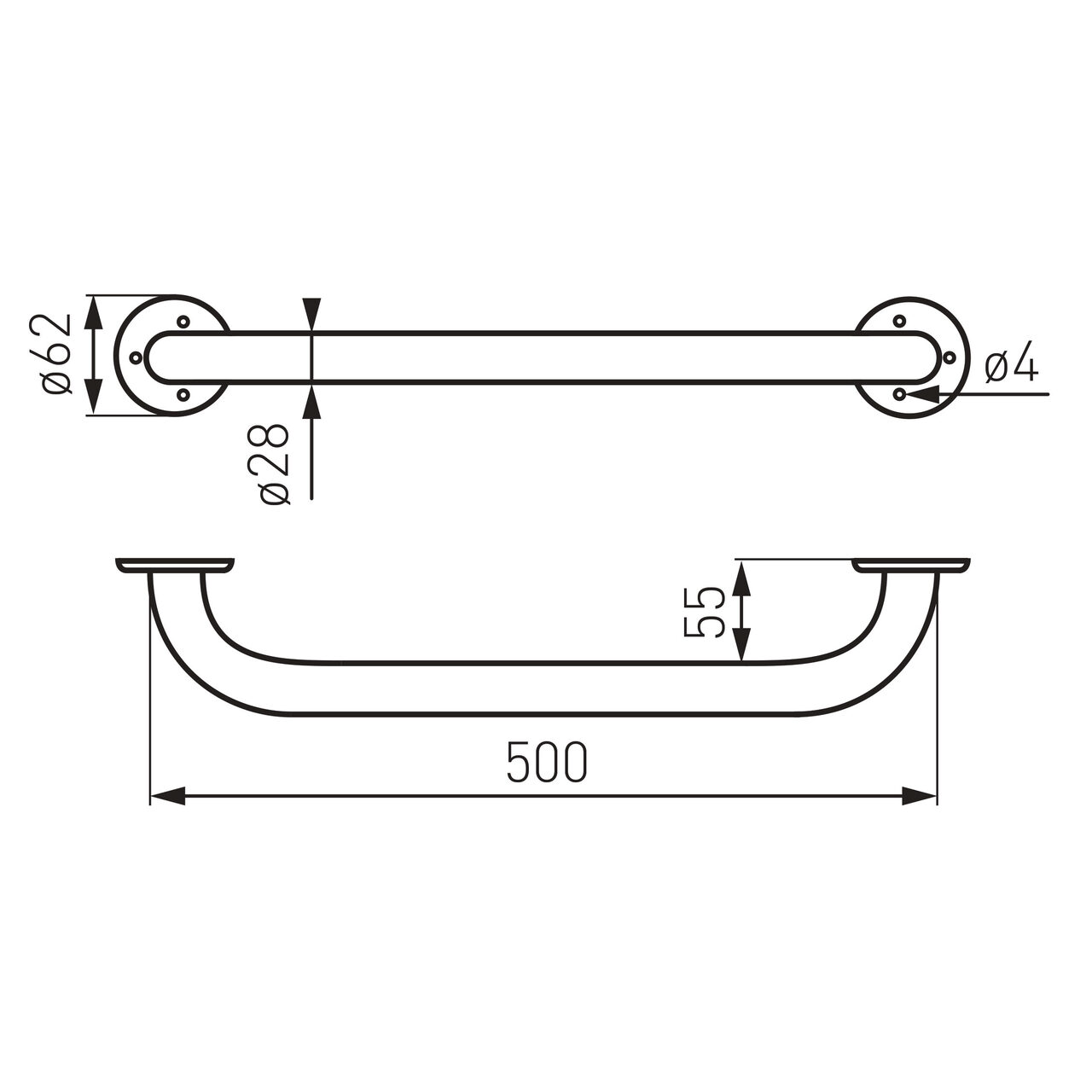 Conceput pentru un sprijin ferm în zone de acces sau circulație, modelul drept oferă o zonă utilă de prindere de 500 mm și o amprentă totală de 570 mm lățime. Construcția din oțel vopsit asigură o structură stabilă, iar finisajul simplifică întreținerea curentă. Designul drept se aliniază ușor pe muchii și perimetre, facilitând integrarea în spații lineare. Profilul de 62 mm pe înălțime reduce proeminența, contribuind la un aspect discret și la un risc scăzut de agățare accidentală. Suprafața vopsită contribuie la o curățare rapidă, indicată în spații unde igiena și ordinea sunt prioritare, fără a complica rutina de mentenanță zilnică.