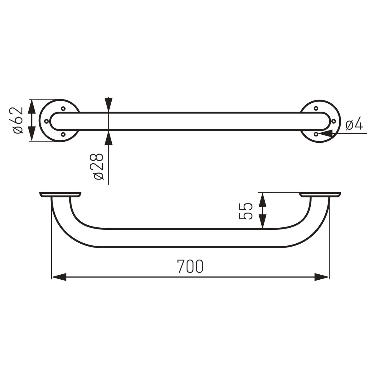 Oferă un punct de sprijin clar, ușor de identificat, pentru utilizatorii care au nevoie de prindere stabilă în mișcare sau la schimbarea poziției. Construcția din oțel vopsit contribuie la o structură robustă, adecvată utilizării repetate. Dimensiunile sunt precise și simplu de integrat: Lungime 700 mm, Lățime 770 mm și Înălțime 62 mm. Profilul drept ajută la poziționare liniară pe suprafețele potrivite, iar forma constantă facilitează prinderea pe toată lungimea. Suprafața vopsită susține un aspect uniform și permită curățare rapidă, în funcție de procedurile locale. Designul rămâne funcțional și neutru, ușor de coordonat cu alte elemente de susținere, fără a aglomera spațiul util disponibil în zona de instalare.