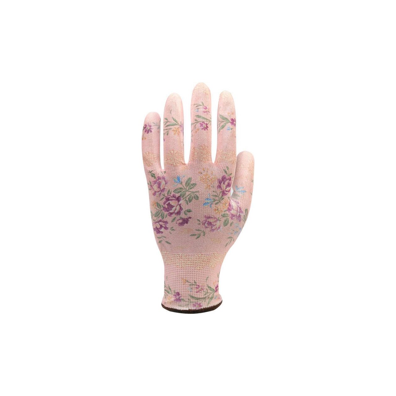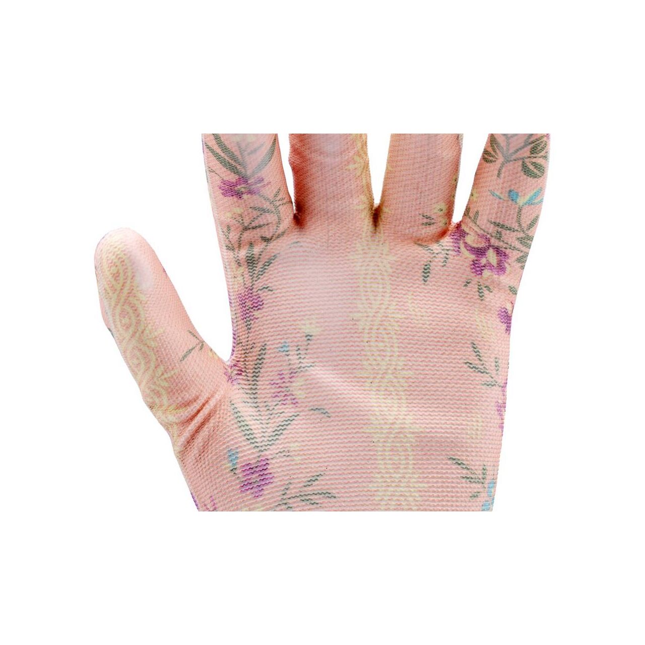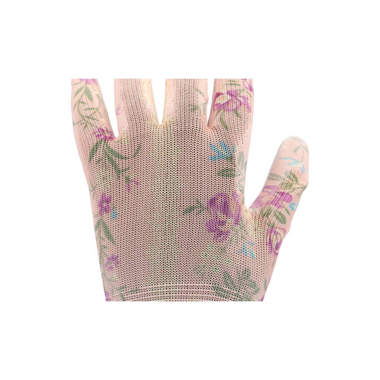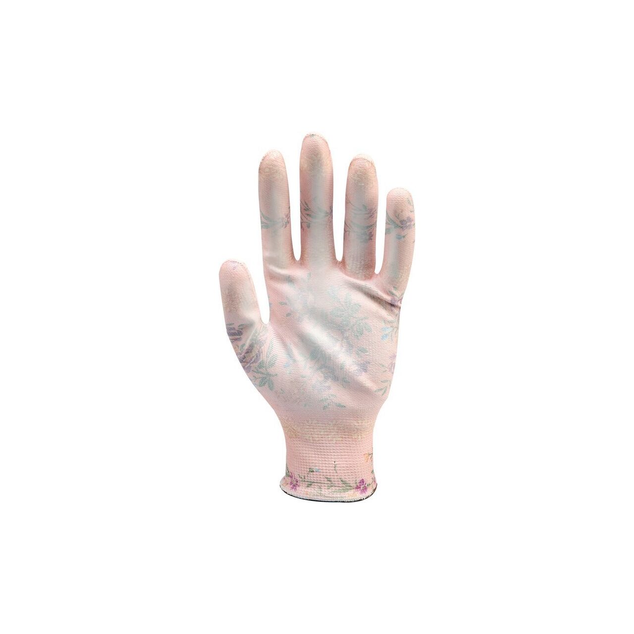 Mănuși de grădină 74137 fabricat din poliester colorat, acoperit în zona de prindere cu poliuretan alb.