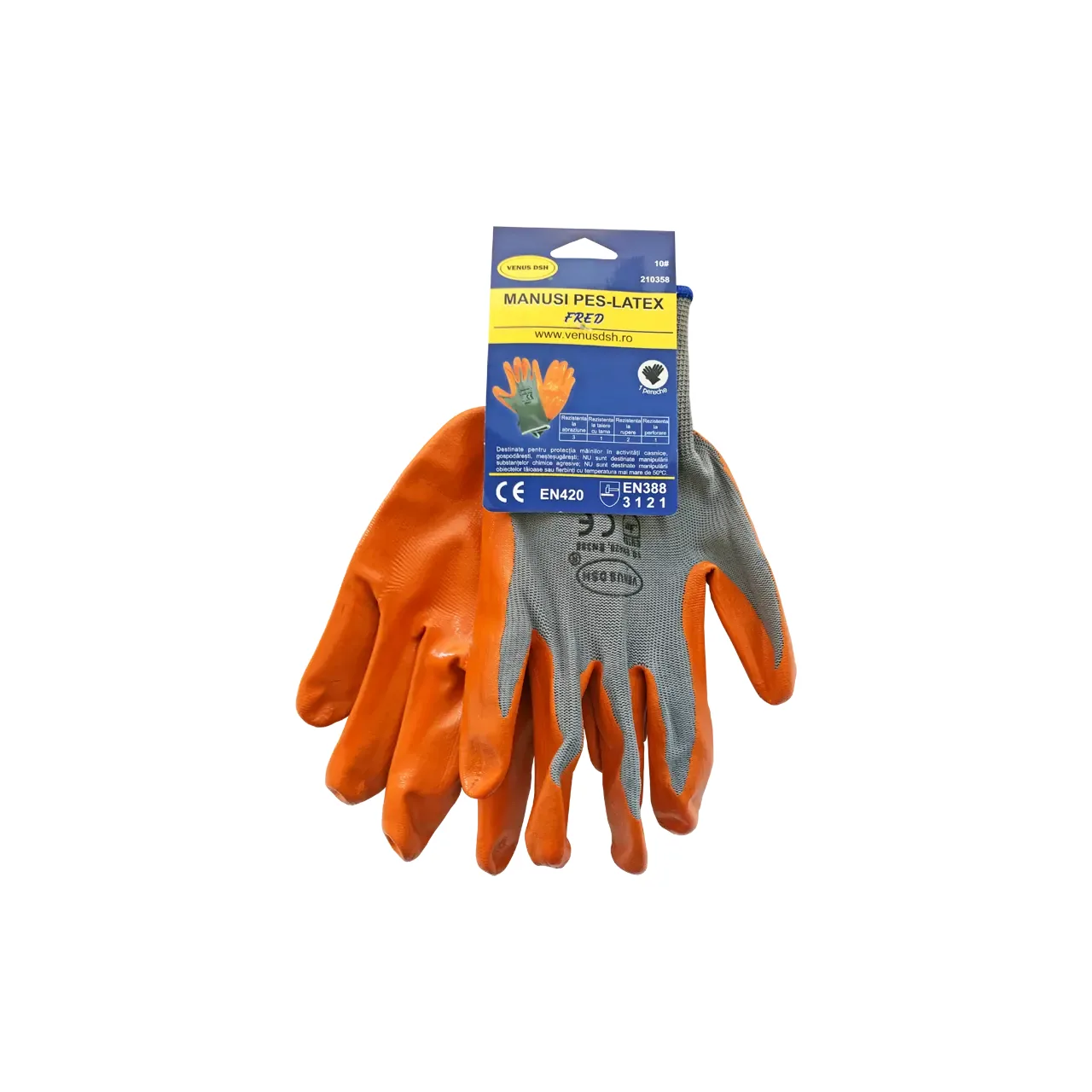 Manusi poliester-nitril "Fred" 10Material: poliester si nitrilMarime: 10Manusi de protectie cu mansete elasticeCertificare CE in acord cu normele europene EN 420 / EN 388 (3121)
