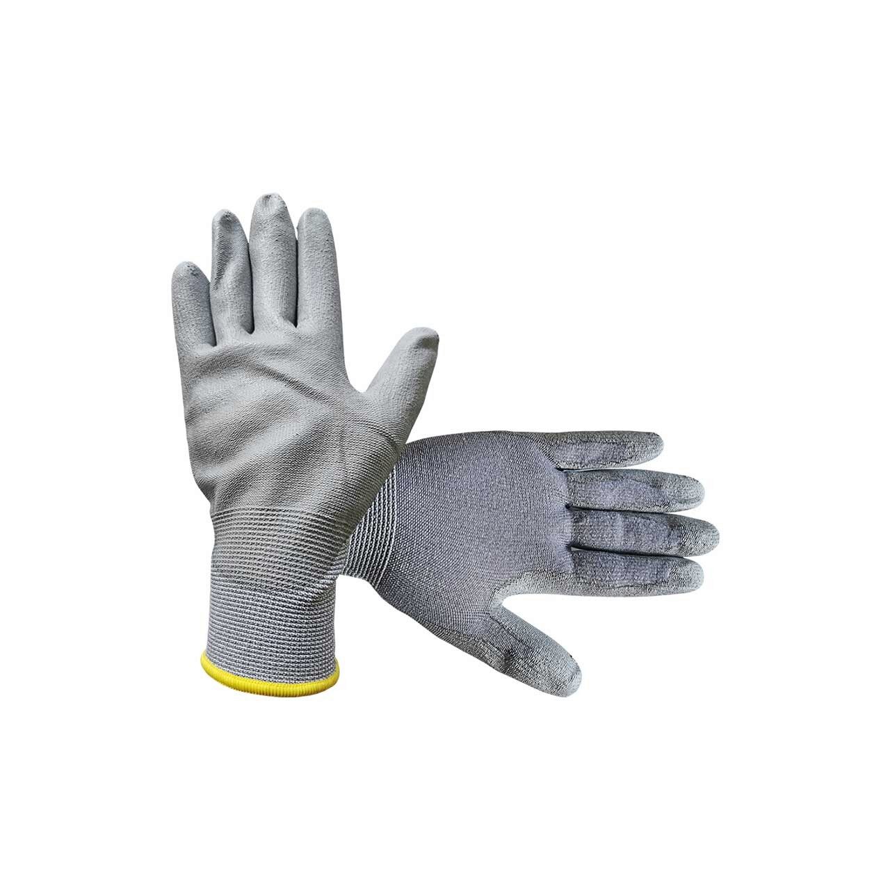 Manusi tricotate necusute, rezistenta la taiere nivel 3, strat PU gri pe palma si degete