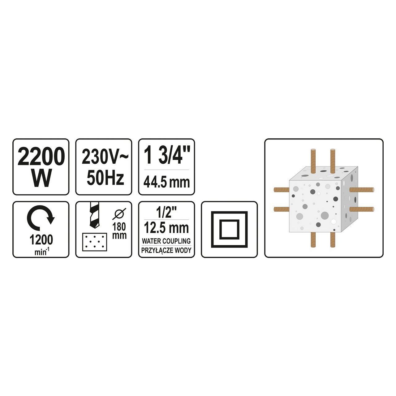 Caracteristici produsMașină universală de găurit cu miez diamantat pentru lucrări manuale sau fixe . Mașina are o putere de 2200W și funcționează la o viteză de 0-1200 rpm.Permite găurirea găurilor într-o gamă foarte largă, variind de la 30mm la 180mm.