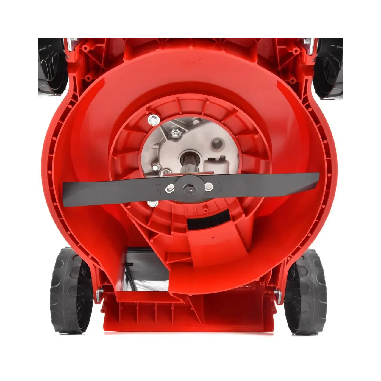 Este echipata cu o roata centrala de reglare a inaltimii reglabila la 3 trepte in intervalul 25-55 mm,iar latimea de lucru este de 41 cm. Singurul element de control este maneta de pe manerul motorului, care, daca este apasata mentine motorul in functiune, iar in cazul in care aceasta este eliberata, motorul se opreste.