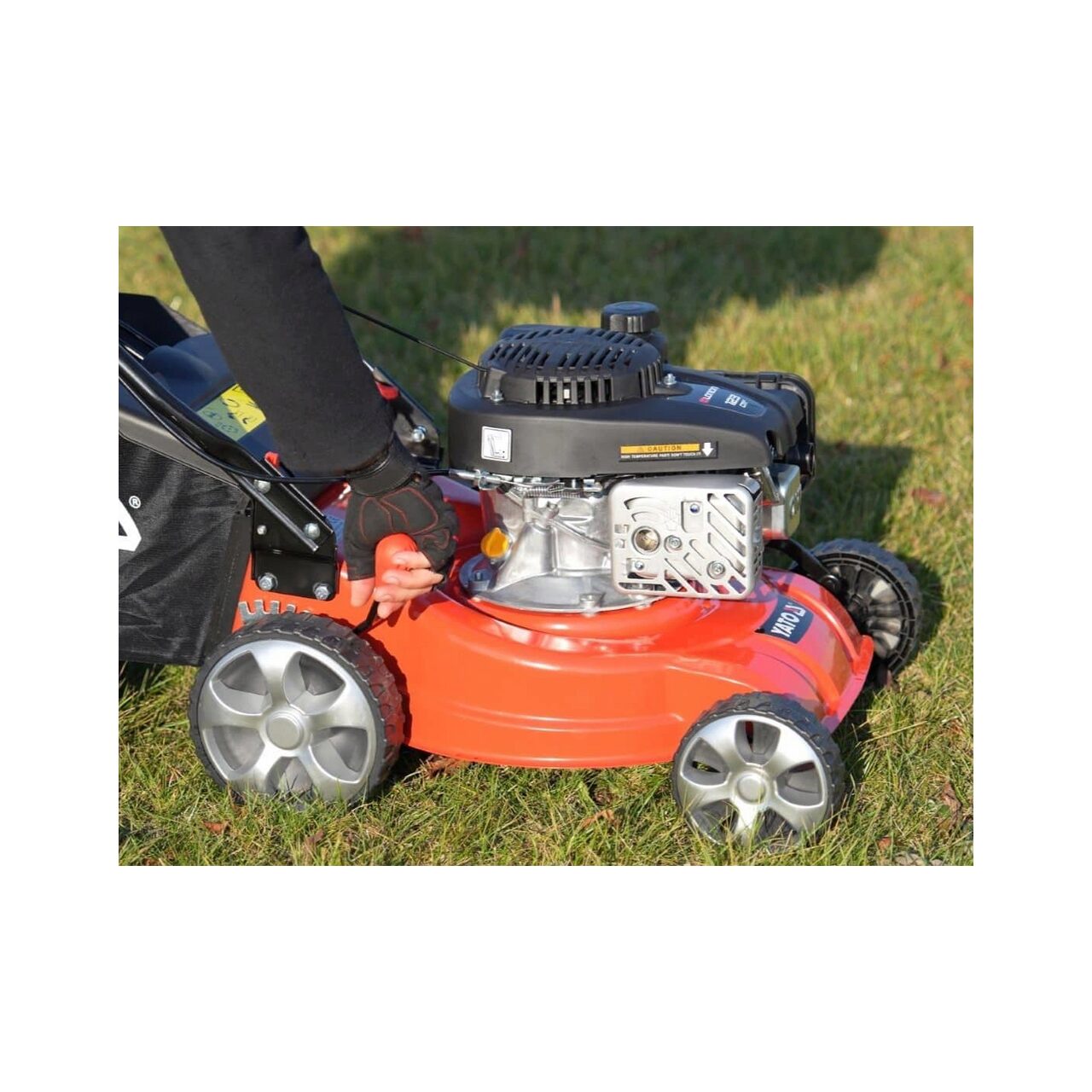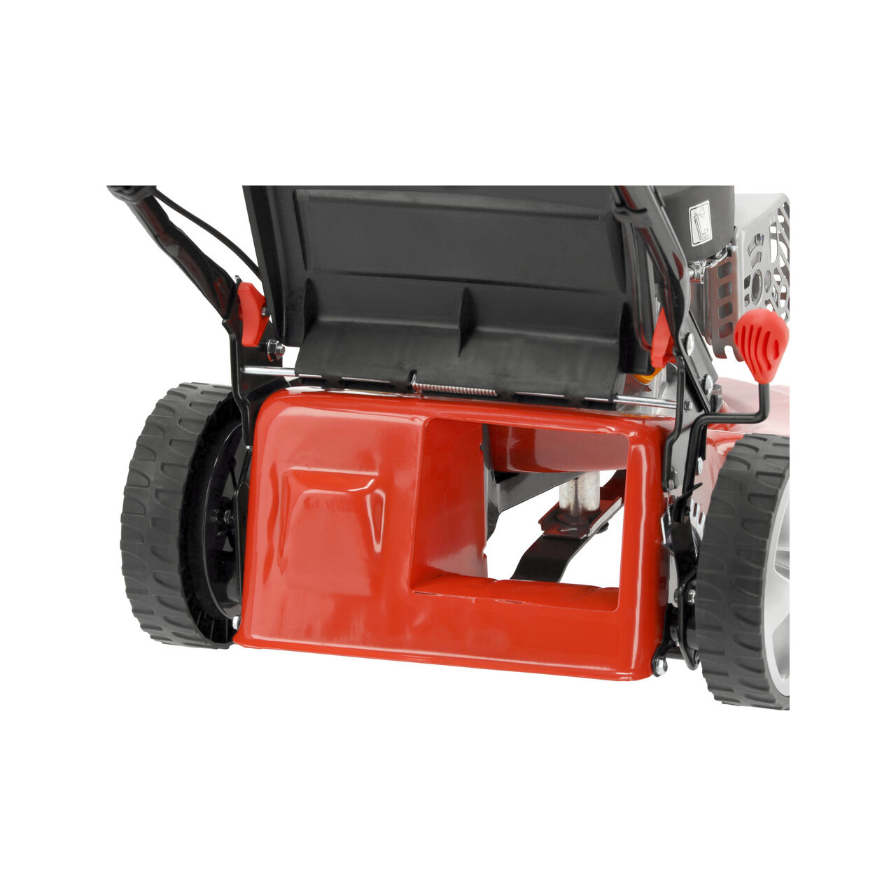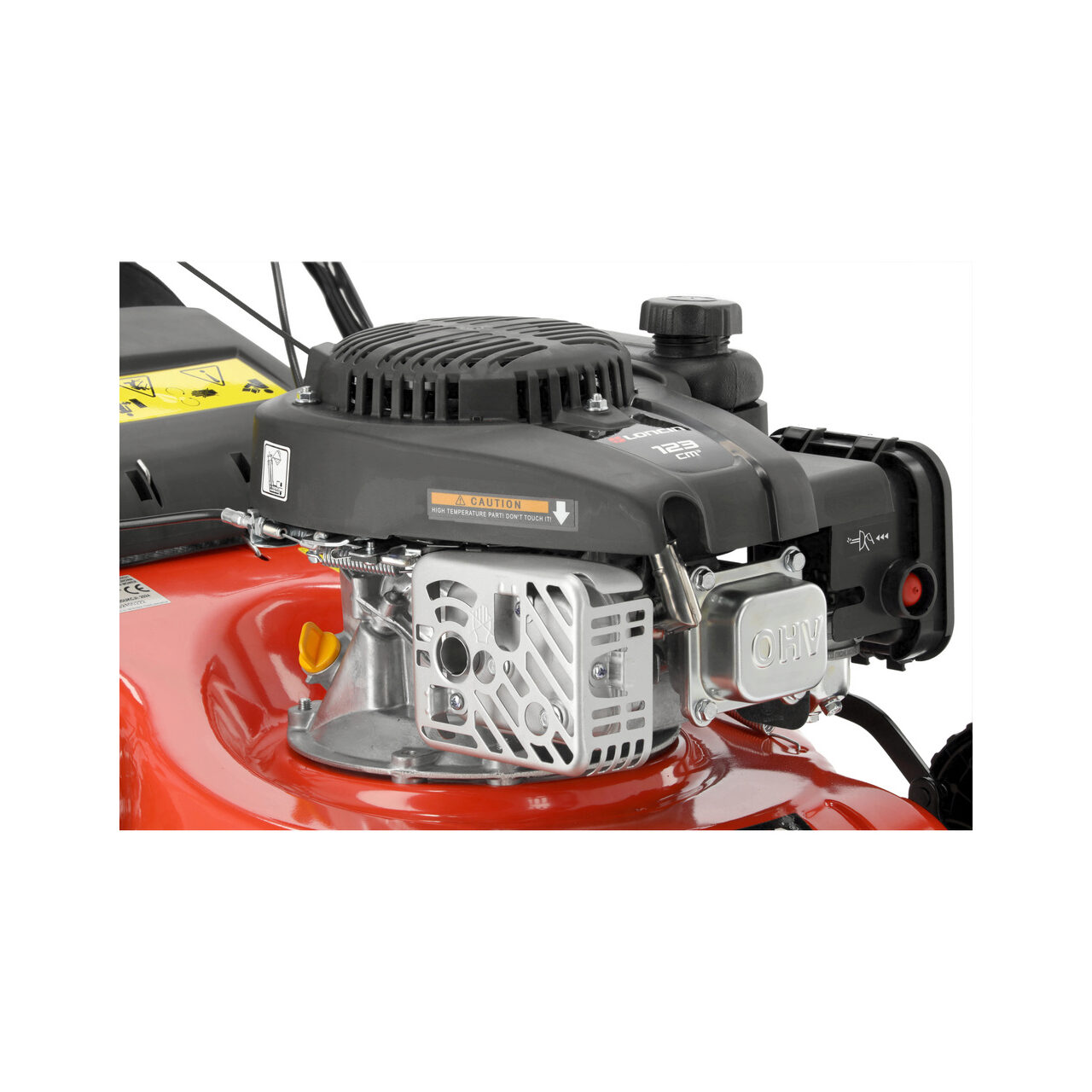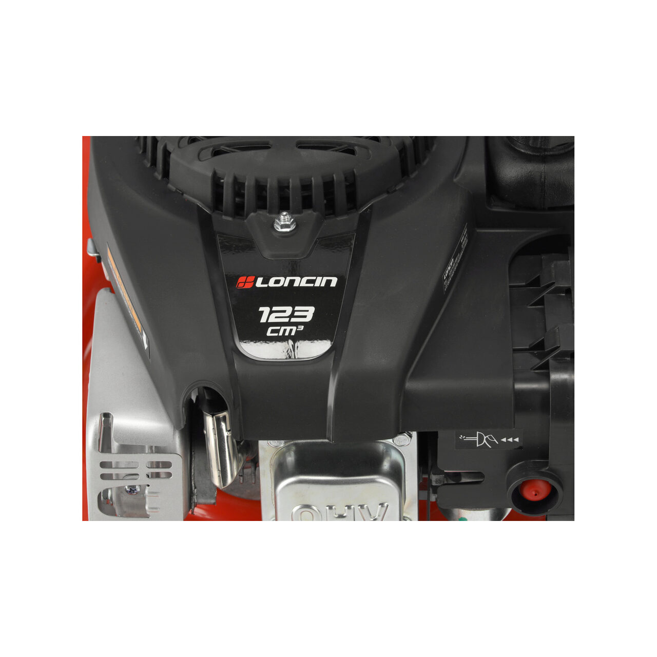 Mașină de tuns iarba pe benzină, echipată cu un motor LONCIN de 123 cm3, care asigură putere și eficiență ridicate. Lățimea de lucru de 41 cm și construcția stabilă facilitează tunderea gazonului pe zone mai înguste, neuniforme și dificile, cum ar fi pe pante, de-a lungul cărărilor și rondurilor de flori sau în plantații. Unitatea încorporată facilitează operarea dispozitivului. Înălțimea de tăiere poate fi reglată cu ușurință folosind maneta pe 7 niveluri, între 25 și 75 mm.