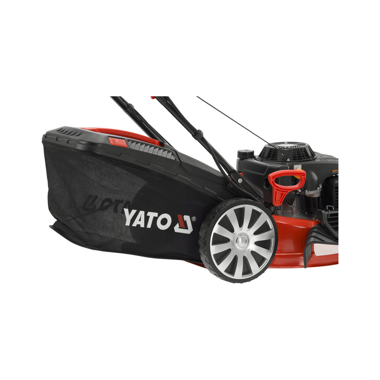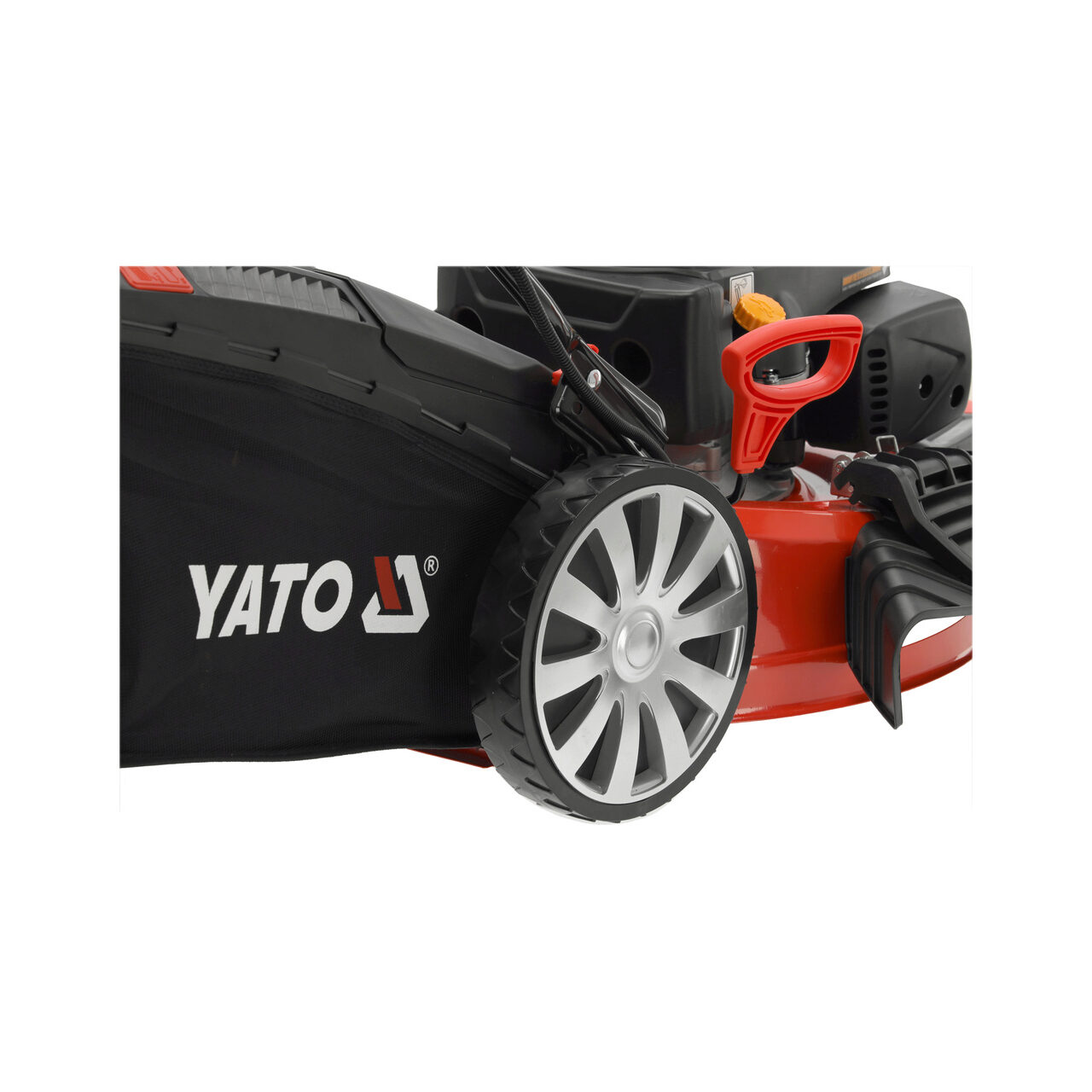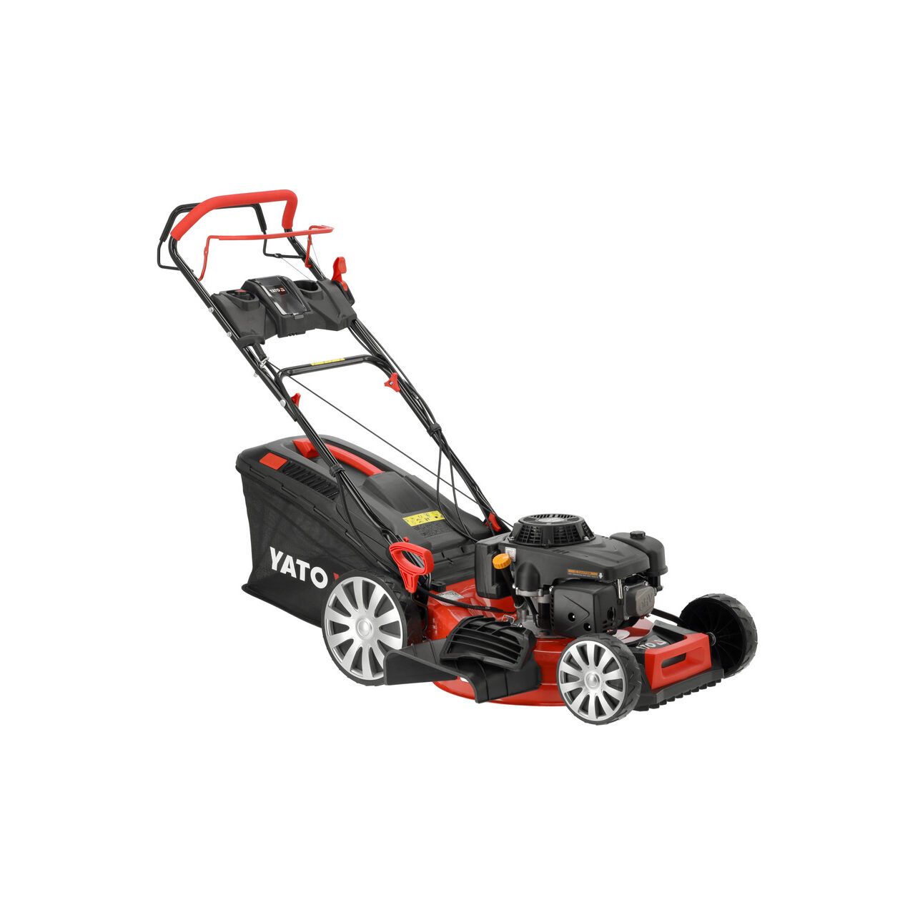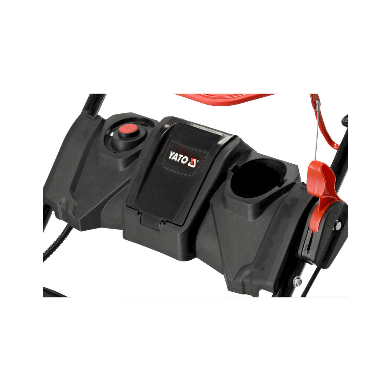 Mașina de tuns iarba are un pornire electrică încorporată (este inclusă o baterie de 2 Ah cu încărcător YATO de 18 V), ceea ce face pornirea mult mai ușoară. Motorul de 4,5 kW poate face față chiar și ierbii foarte înalte.
