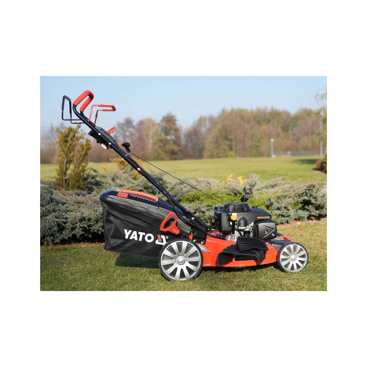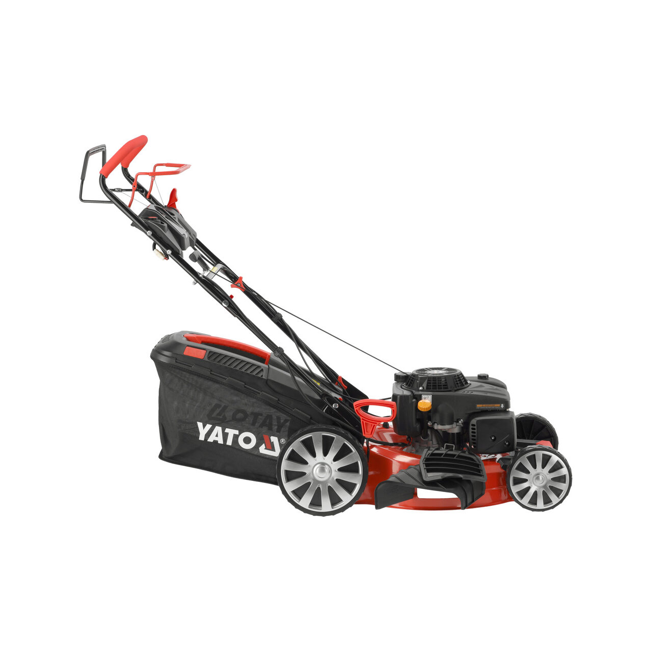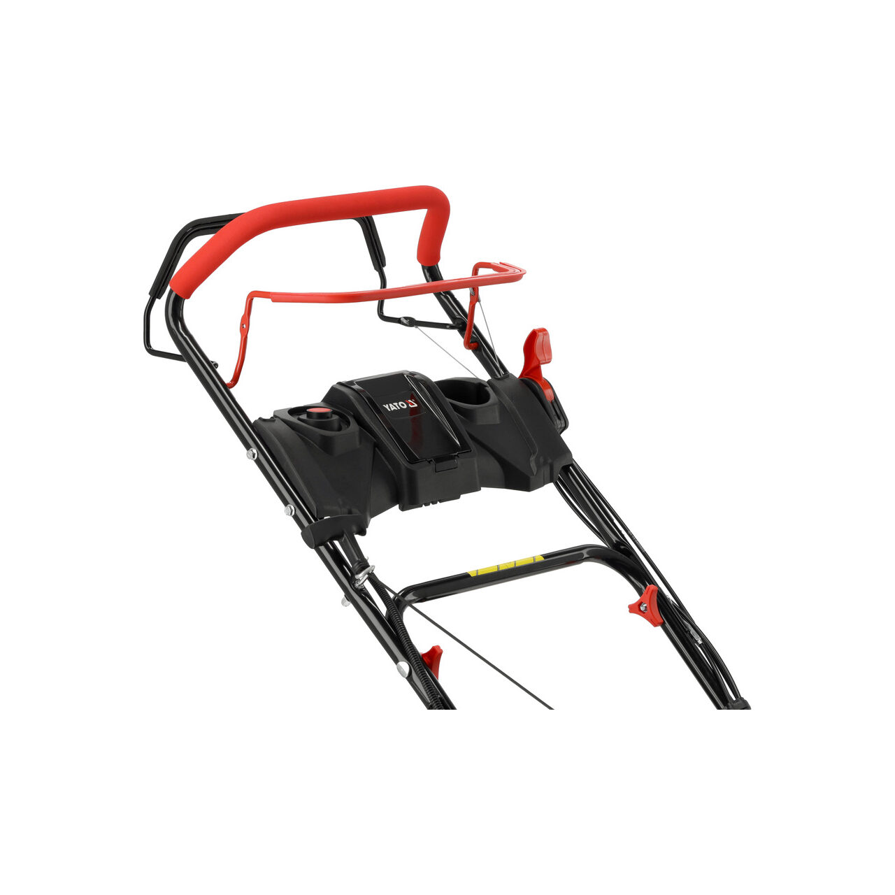 Mașina de tuns iarba are un pornire electrică încorporată (este inclusă o baterie de 2 Ah cu încărcător YATO de 18 V), ceea ce face pornirea mult mai ușoară. Motorul de 4,5 kW poate face față chiar și ierbii foarte înalte.