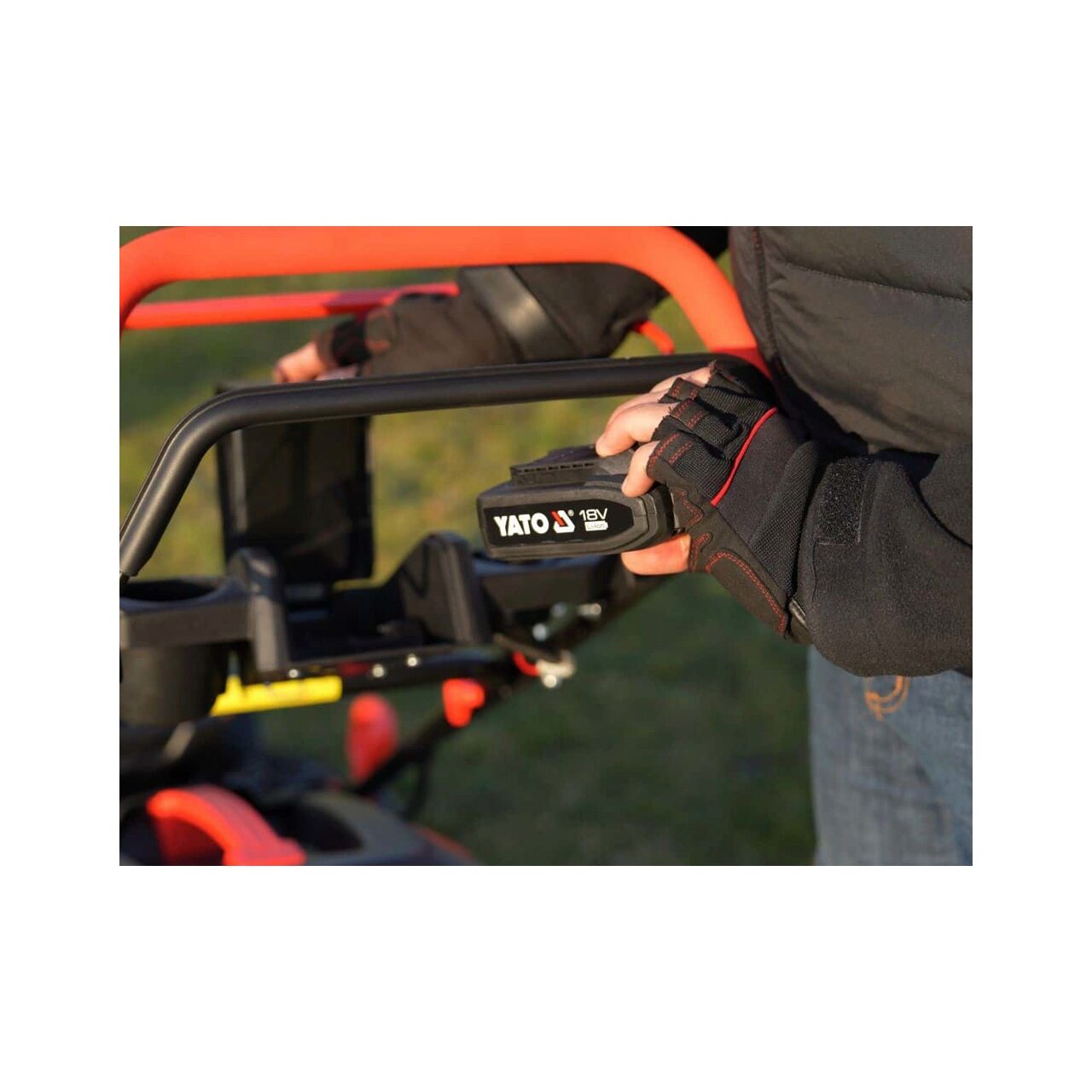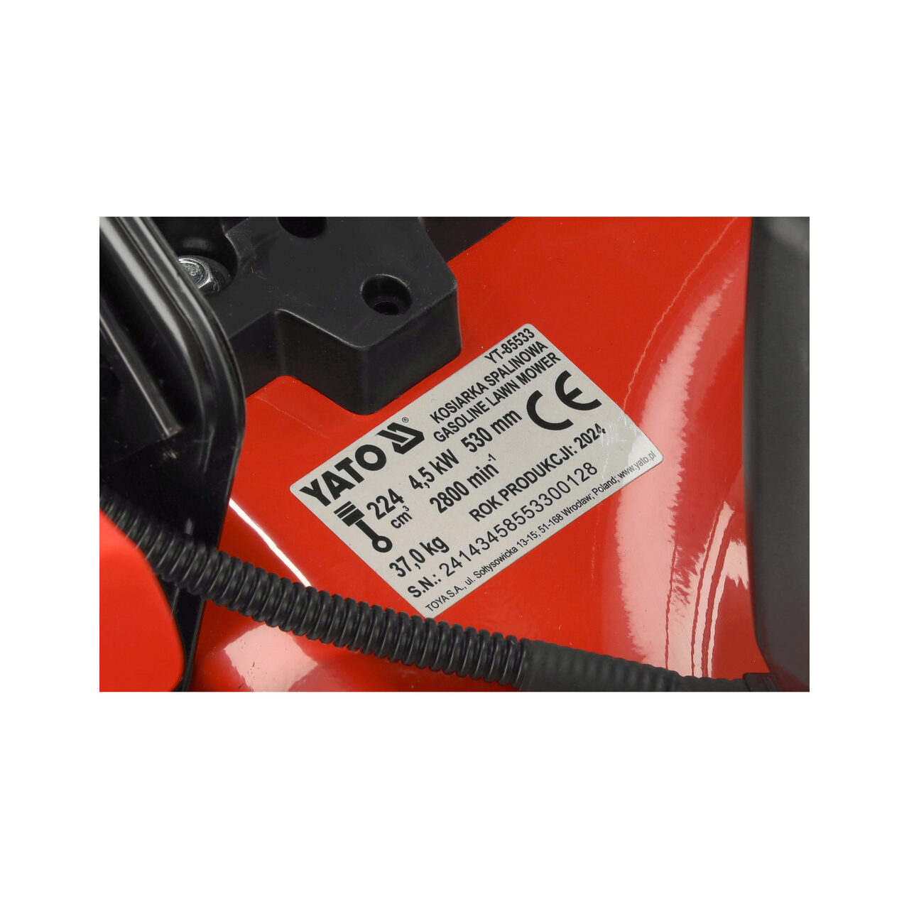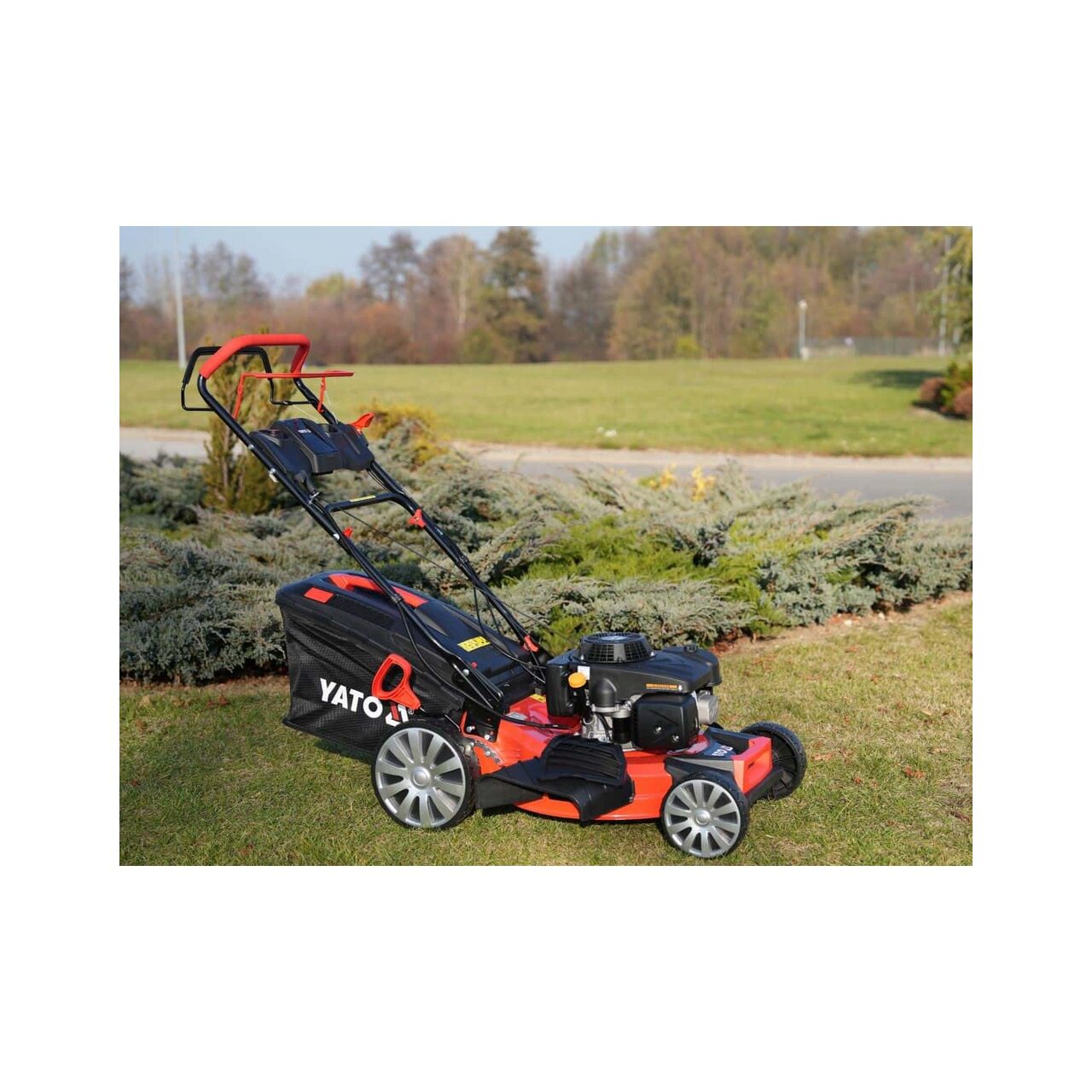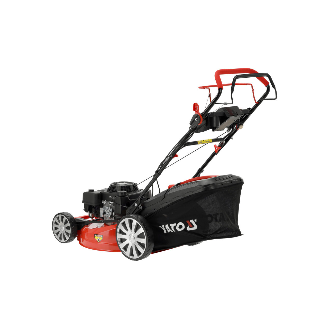 Mașina de tuns iarba are un pornire electrică încorporată (este inclusă o baterie de 2 Ah cu încărcător YATO de 18 V), ceea ce face pornirea mult mai ușoară. Motorul de 4,5 kW poate face față chiar și ierbii foarte înalte.