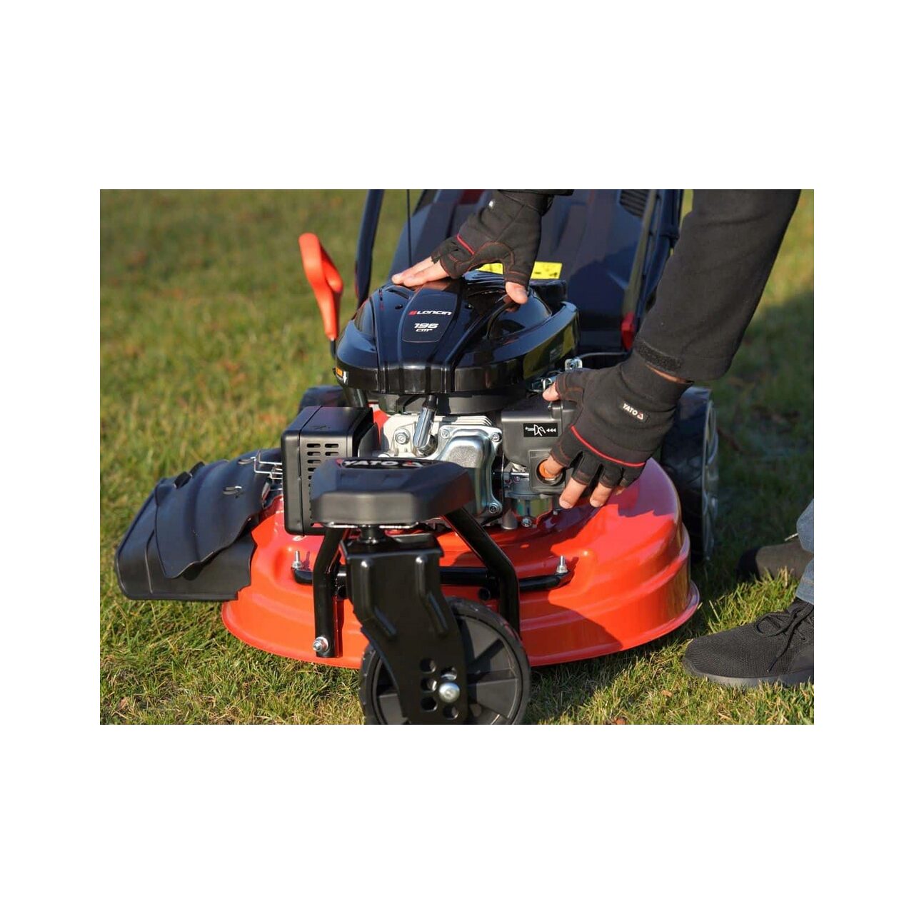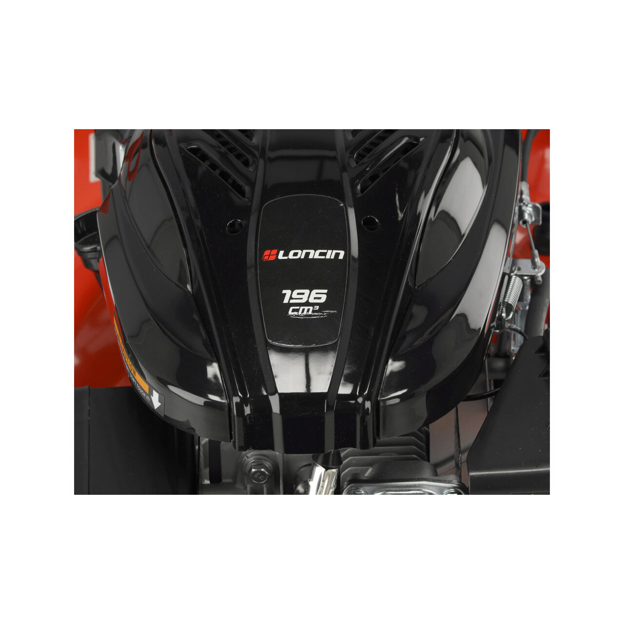 Mașină de tuns iarba cu trei roți pe benzină, echipată cu un motor LONCIN de 196 cm3 care asigură putere și eficiență ridicate. Roata față direcțională oferă o manevrabilitate excelentă, ceea ce face ca mașina de tuns iarba să fie o alegere bună pentru parcelele cu un număr mare de plantații. Lățimea de lucru de 53 cm permite o cosire foarte rapidă, iar reglarea centrală a înălțimii de tăiere în 8 trepte vă permite să ajustați ușor nivelul lamelor în funcție de starea gazonului. Acționarea încorporată facilitează deplasarea dispozitivului chiar și pe teren dificil, de ex. pe dealuri sau pe suprafețe neuniforme.